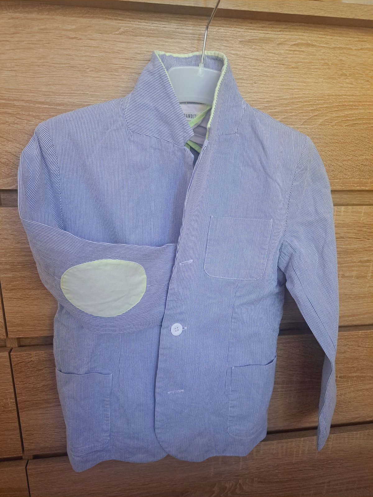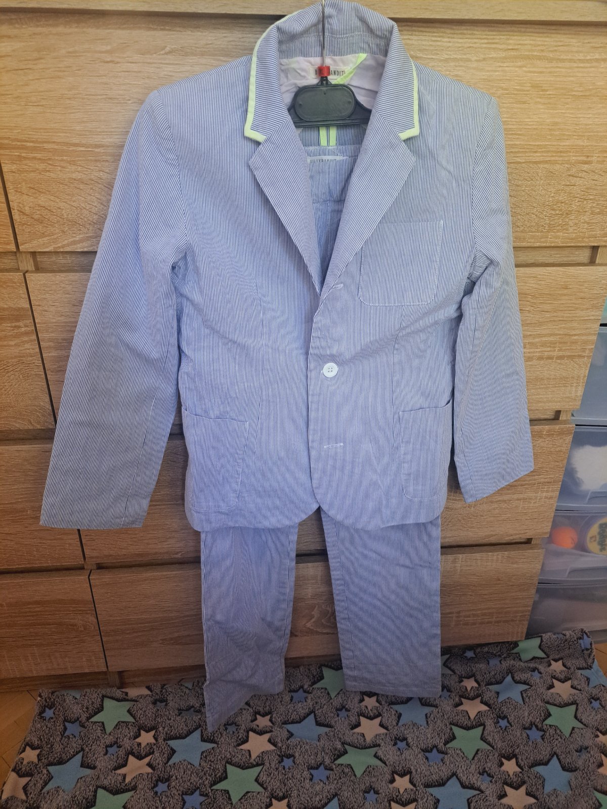 Veľmi pekný oblek pre chlapca v bledo modrej farbe, pruhovaný, v peknom stave, nenašla som žiadne chyby. Je použitý cca 3x, značka BillyBandit. Veľkosť 10-12 rokov, rozmery sú: