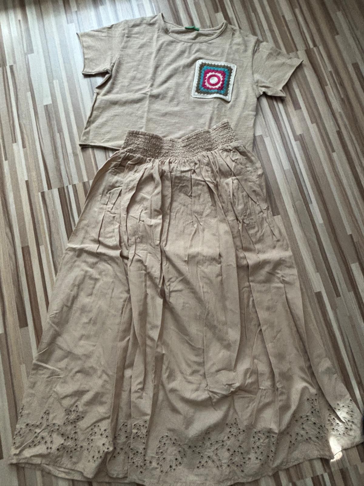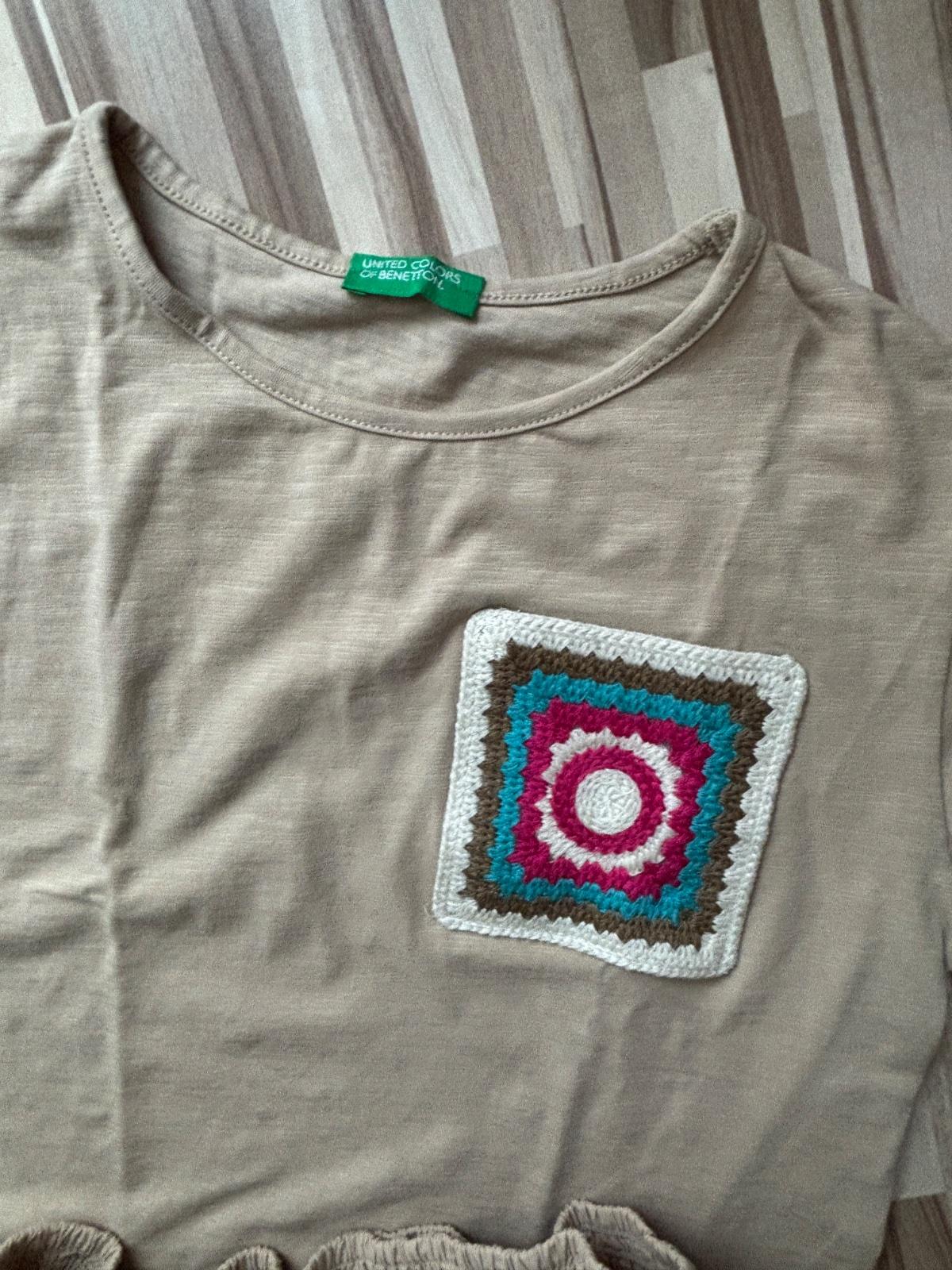 Letný komplet Benetton vyšívané tričko a madeirová