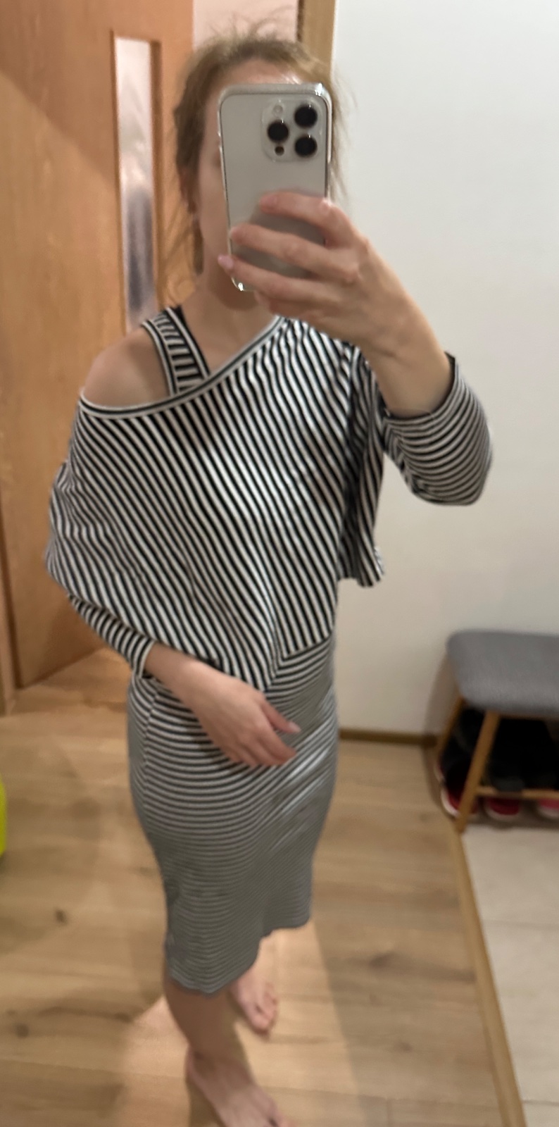 Dámsky komplet šaty/svetrík nosený vo veľmi drobrom stave. Kupovaný cez poľský eshop. PC vysoká, príjemný materiál