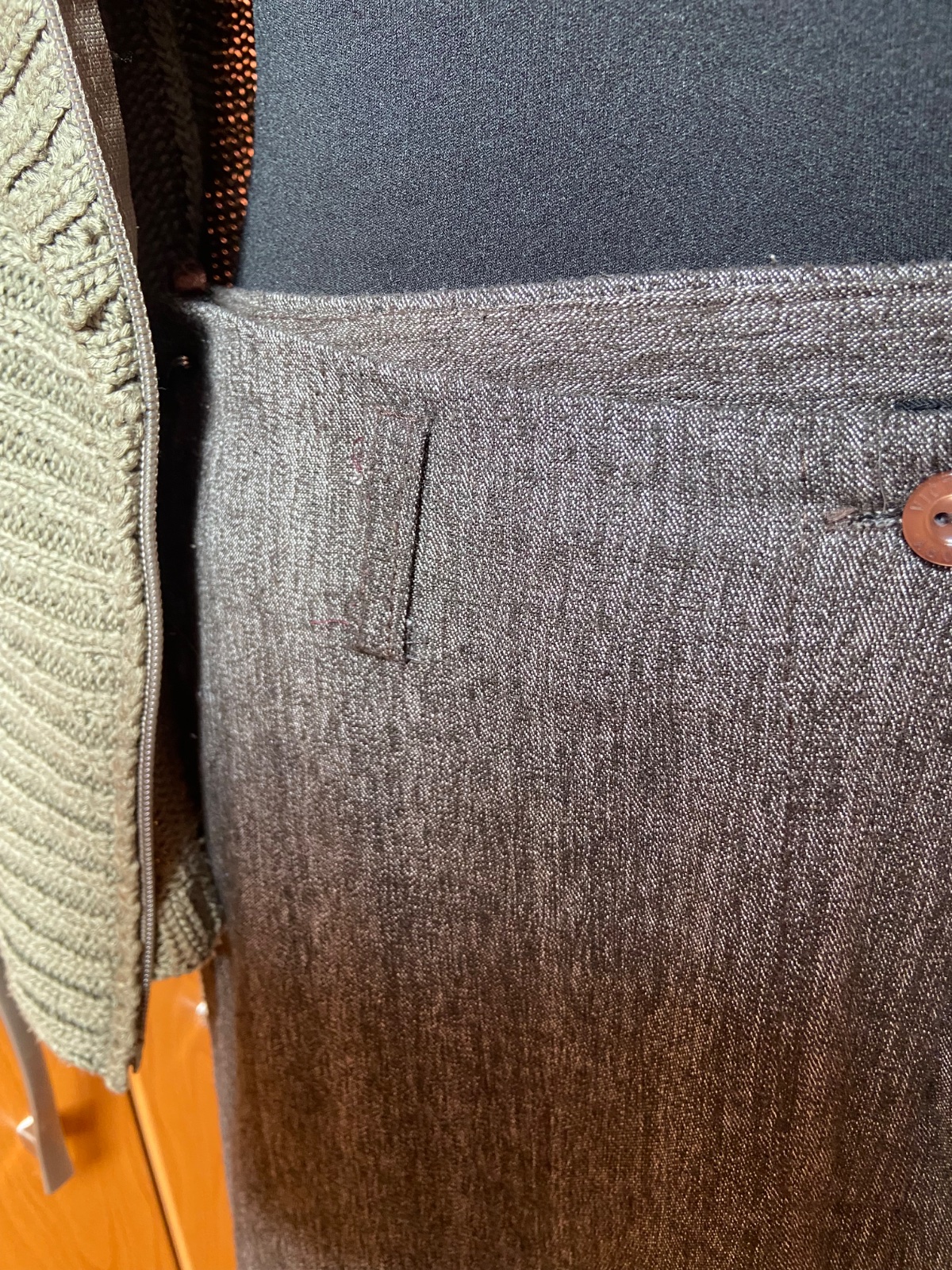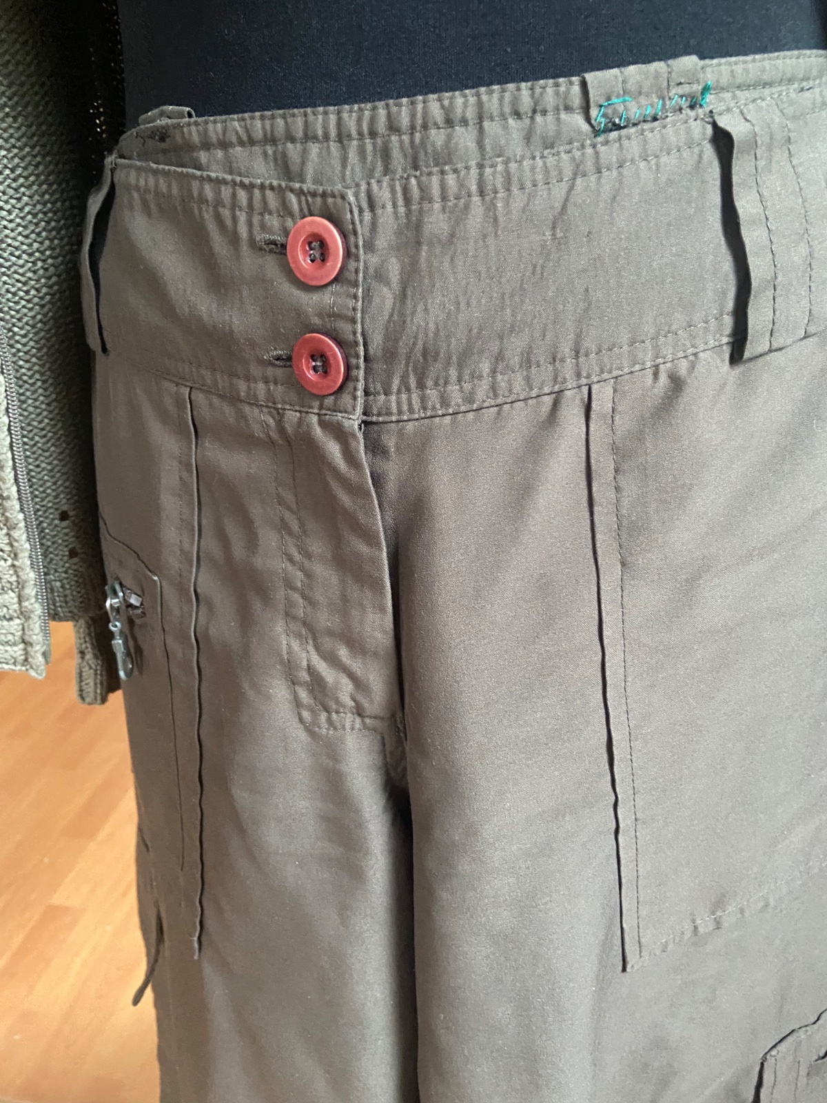 Kapsáčové nohavice 40, bez elastanu, pás pevný 2x40, boky 2x49. Sed predný 24, zadný 33. Dĺżka vonkajšia 94cm. Šírka stehna 29.