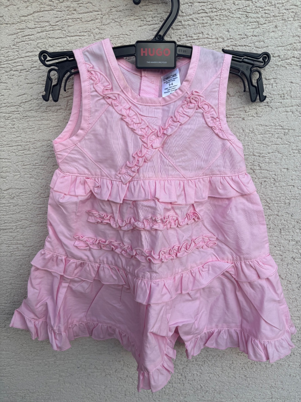 Ruzove body s aplikaciou vtacika k tomu kratasky s hnedymi bodkami, UK vyrobca, pisana velkost 0-6 mesaicov, zodpoveda 68-cke bez poskodenia 2EUR. Nadherna supravka tielko / tricko na ramienka / bl...