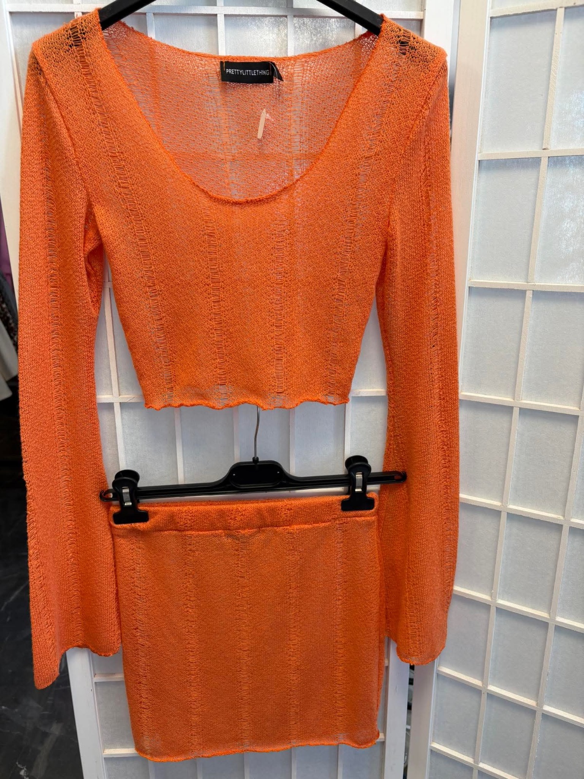 Raz oblečené. Leginy veľkosť xs a podprsenka veľkosť s. Farba výrazná oranžová. Nie su priesvitné. Nie su bedrové ani bezsvove.