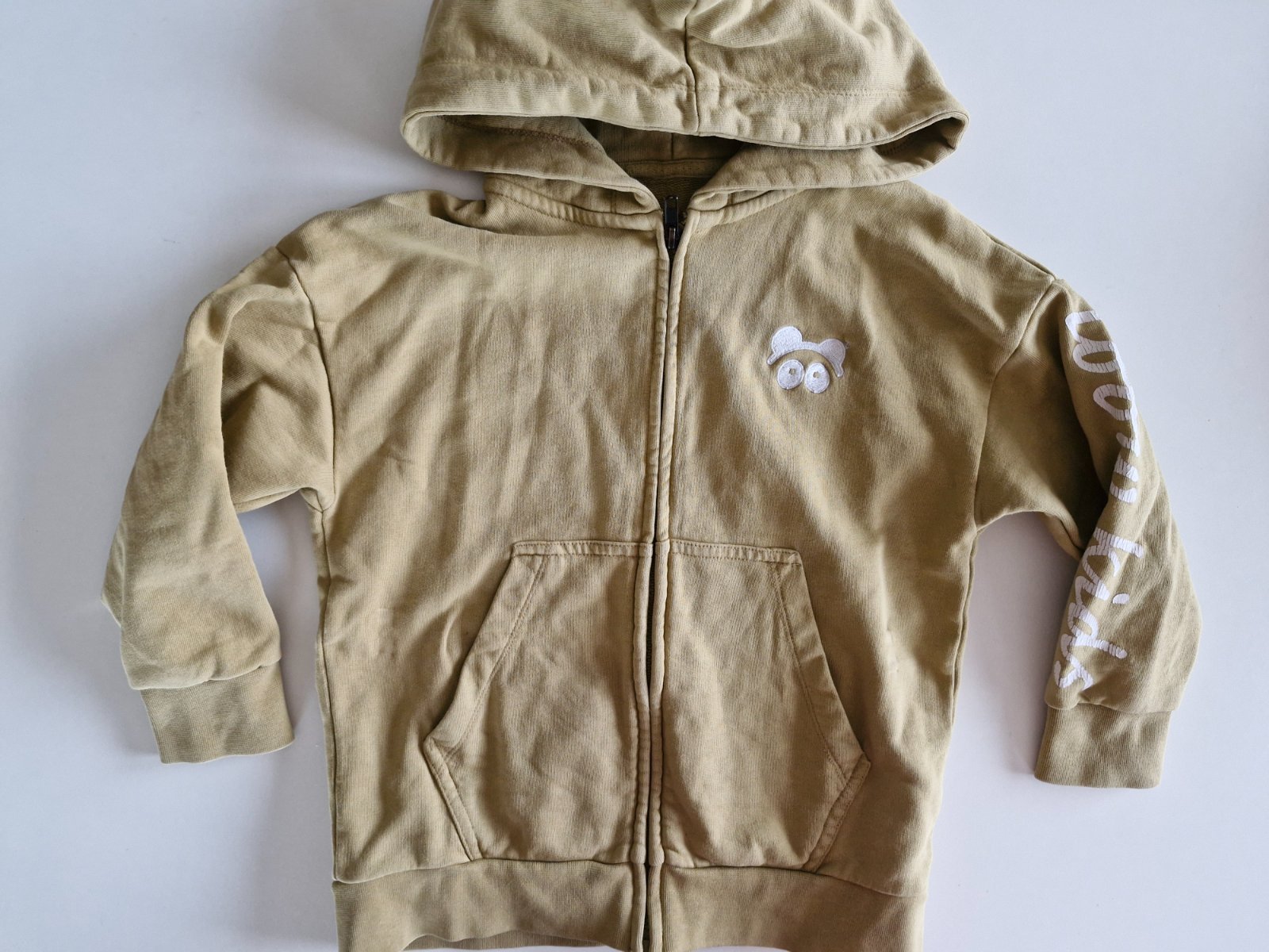 aj ako veľ.104..Párkrát vzaté..tepláky nosené viac ako mikina..tú sme mali asi 3-4x..farba nejde dobre zachytiť.viac sýtejšia ajo na foto.niečo ako na druhej fotke.pratie trošku vidieť..