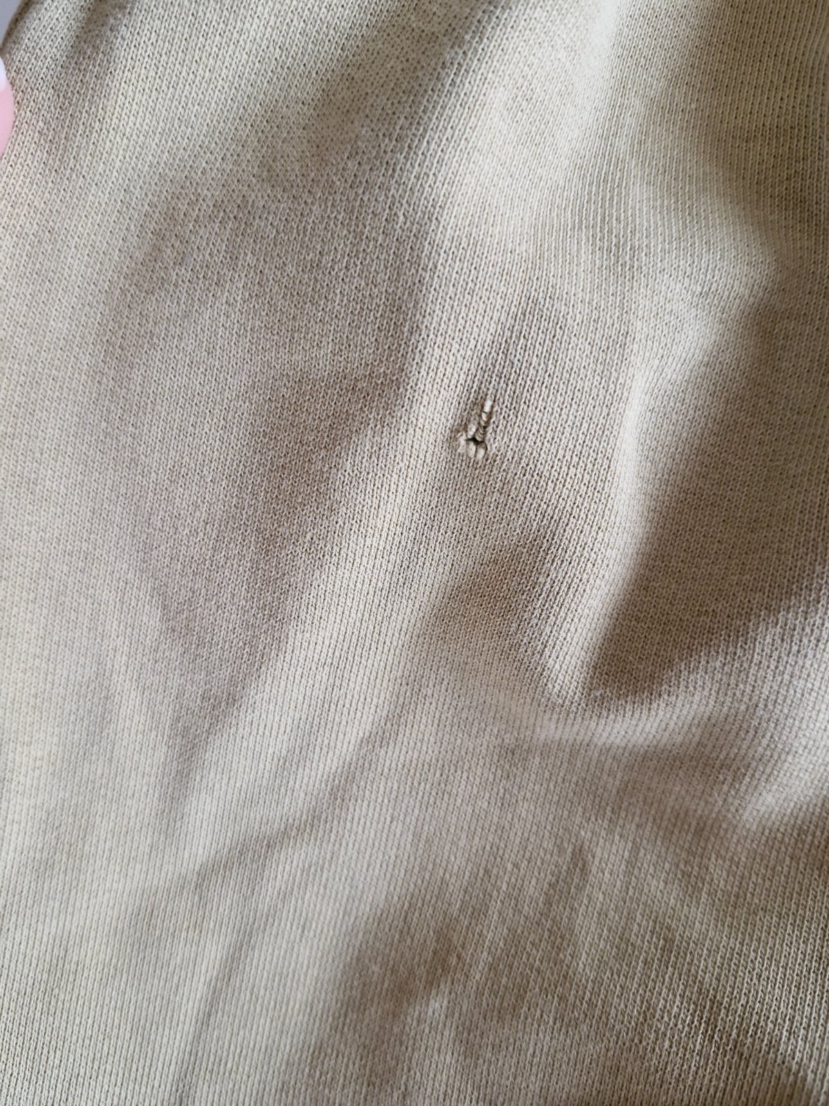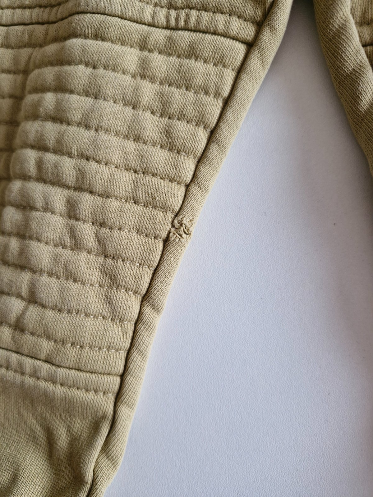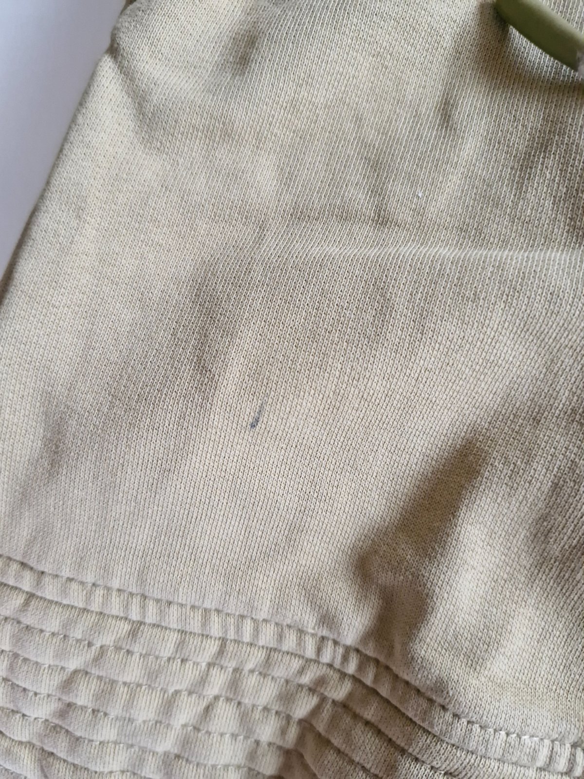 V peknom nosenom stave, kolienka trochu vyťahané, ale nevyšúchané. Farba je krajšia, tmavšia horčicová, foťák nevedel zachytiť.