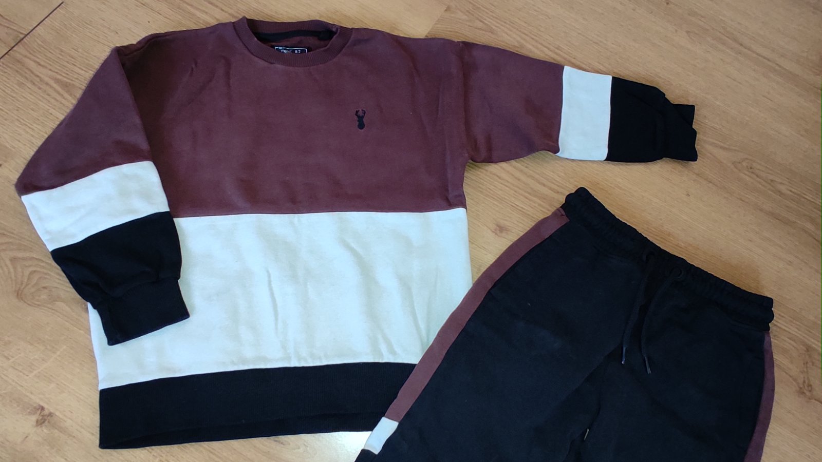 Ponúkam na predaj peknú teplakovu súpravu. Nosena, ale bez poškodení, žiadne fľaky, dierky, ostatné kolená,...pekná. cena 14 eur.