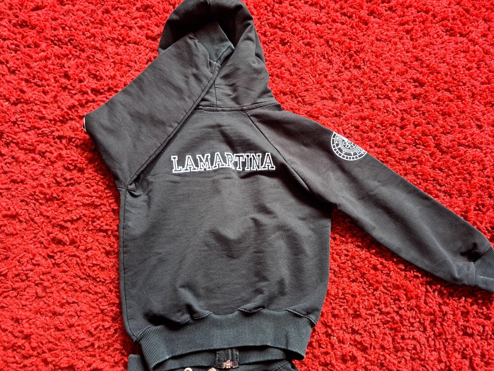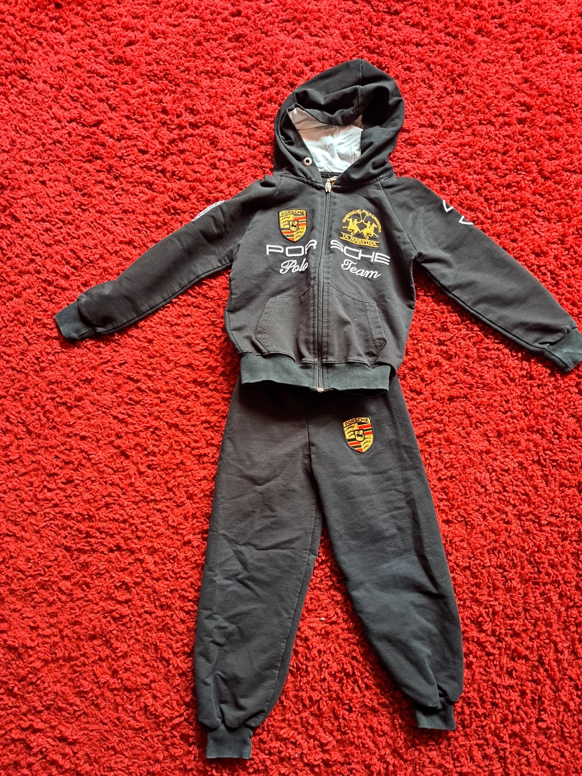 Krasna Porche suprava bez akycholvek posk.pekne farby bez vysuchani, nosena len obcas. Jedine- chyba snurka v teplakoch, ale guma dobre drzi, len estet. zalezitost.