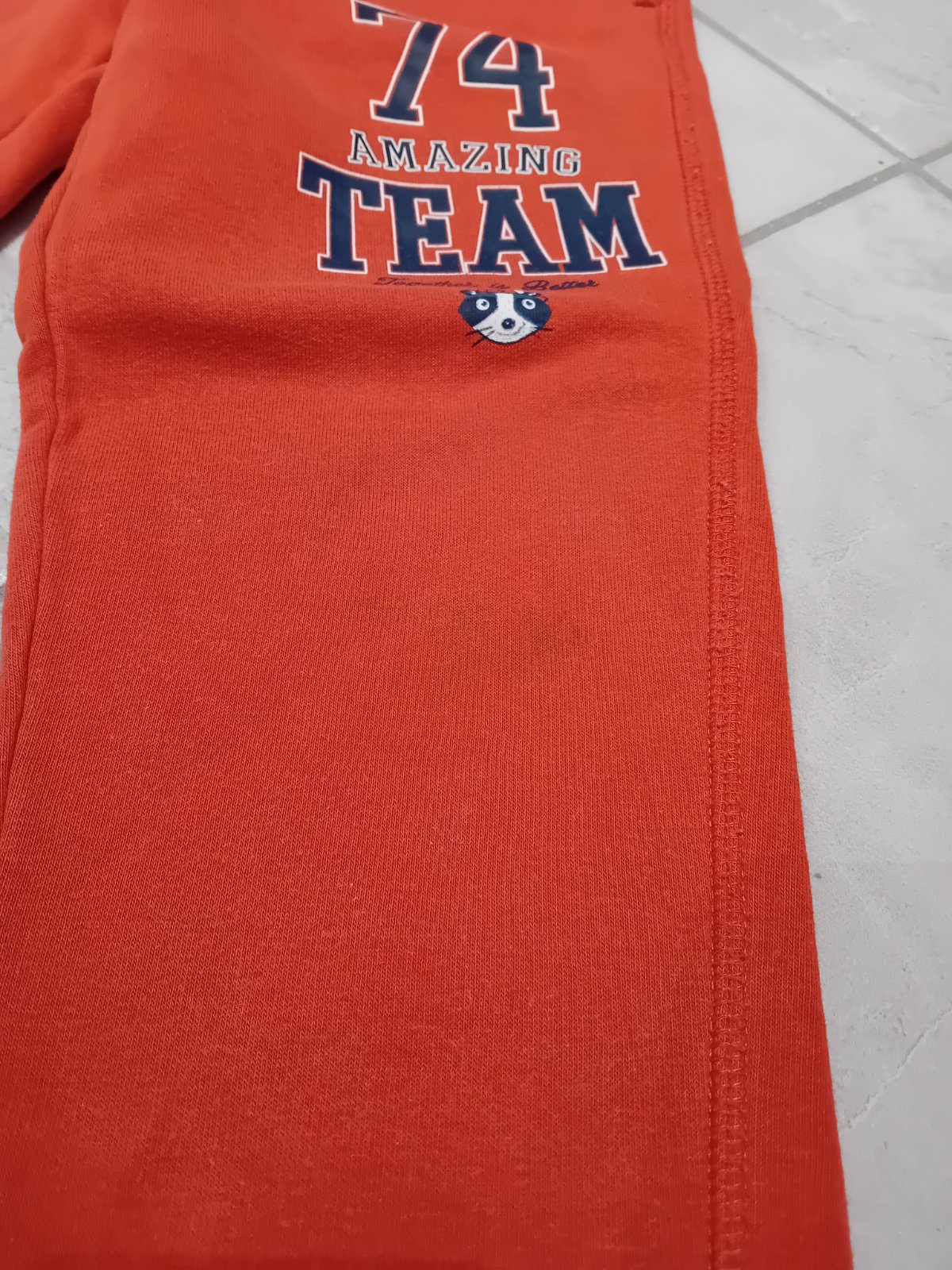 Mikina so zapínaním, na rukávoch sú maličké fľaky, viď fotky. Pri nosení to nie je vidno, neskúšala som to nejak špeciálne vyčistiť, k mikina sú aj tepláky, na jednom kolene je mierny fľak, ale tiež to nie je nejak vidno. Bud každé za 3€ alebo spolu za 5€