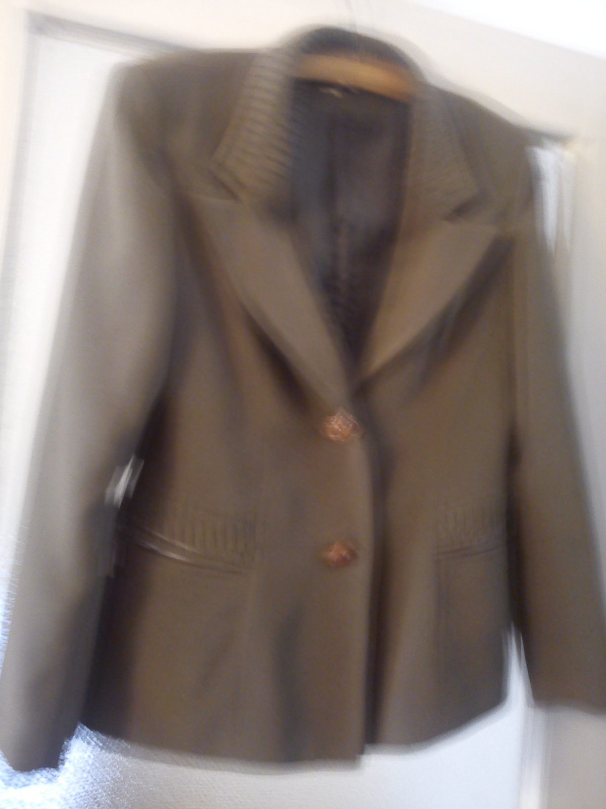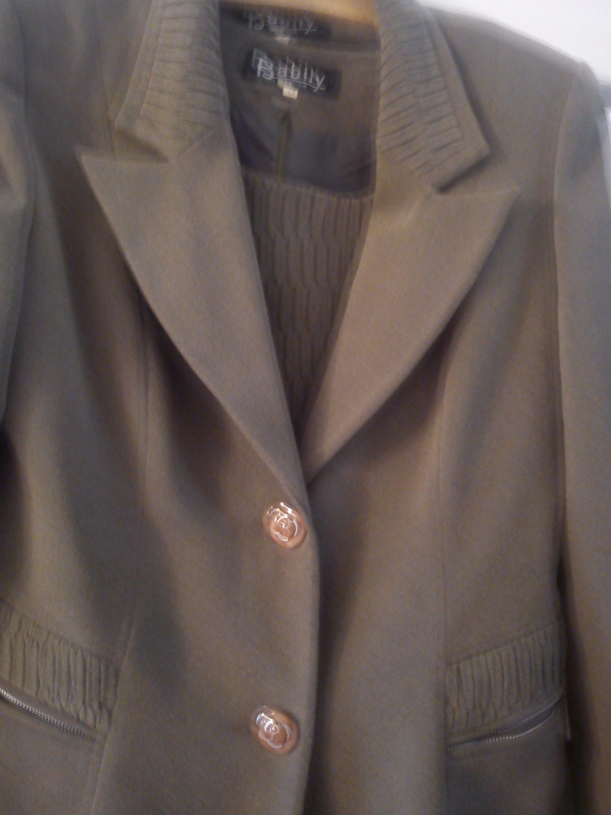 predám zelený kostým: sukňa - pás 74cm, dĺžka 69cm, rázporok vpredu 24cm, nohavice - pás 72cm, dĺžka 112cm, sako (podšité) - rukáv 60cm, dĺžka 65cm