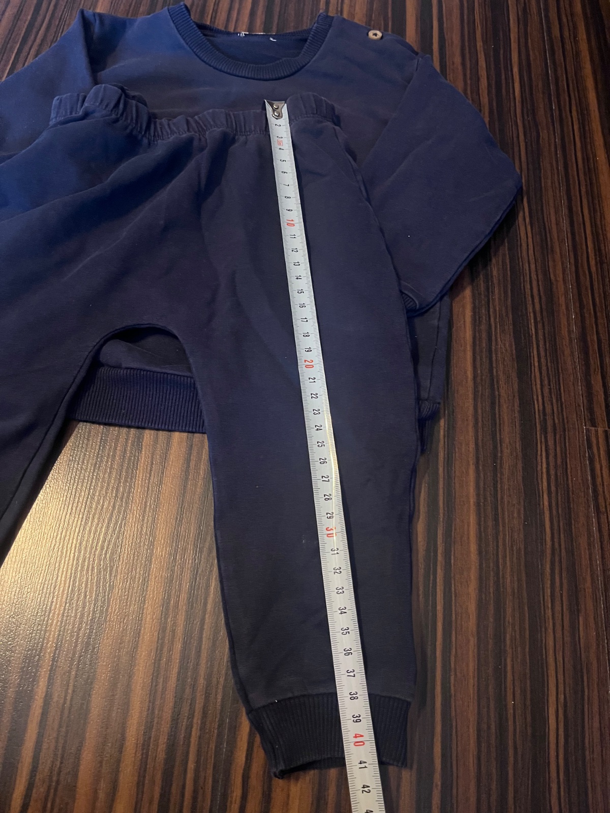 Tepláková suprava značky Benetton, veľkosť uvedena 82, dĺžka nohavic 41 cm. Veľmi pekný stav, bez dier, zmolkov, aj farba pekná…nedalo sa dobre odfotiť. Kvalita veľmi jemná a nie sú veľmi hrube. Ľahké obliekanie vďaka gombikom na bunde. Jediná chyba je že sa zosuchal obrázok.