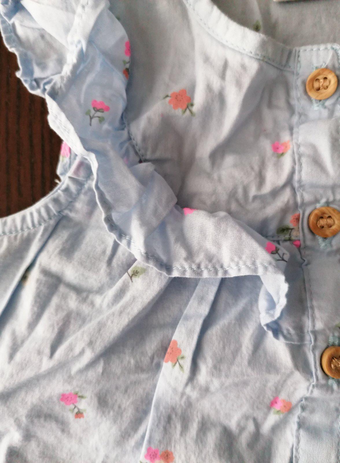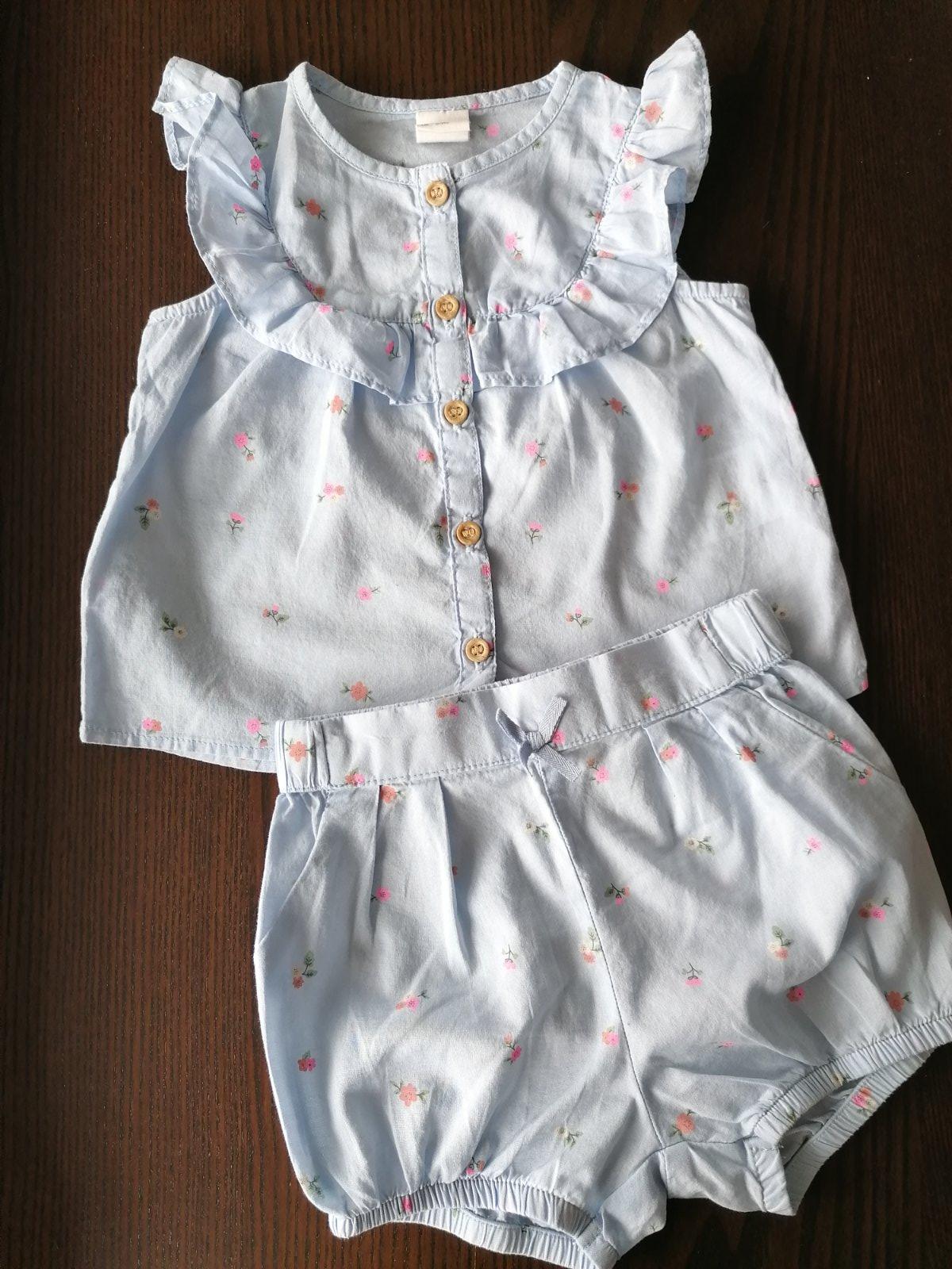Ponúkam rozkošný kompletik s drobnými kvietkami. Noseny na striedačku s ďalšími jedno leto, nájde sa chlpok, inak bez vážnych poskodeni. Tričko ma cvoky pre ľahšie obliekanie a volanik na rukave V ...