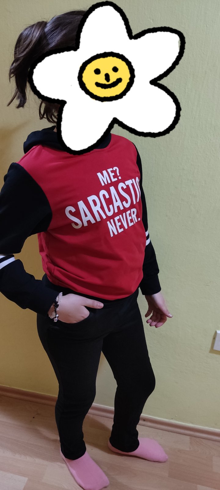 Málo nosena mikina, ako nová.Dĺžka 51cm,šírka pod pazuchami 42cm, Legíny s vreckami sú nové. Neskoro sme dostali. Vhodné do školy, aj na Mikulášsku, vianočnu oslavu. Cena+pošta