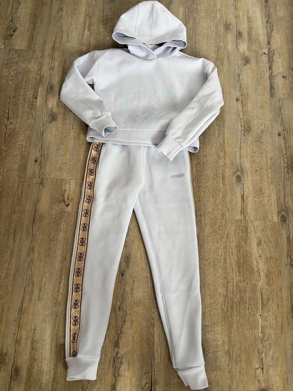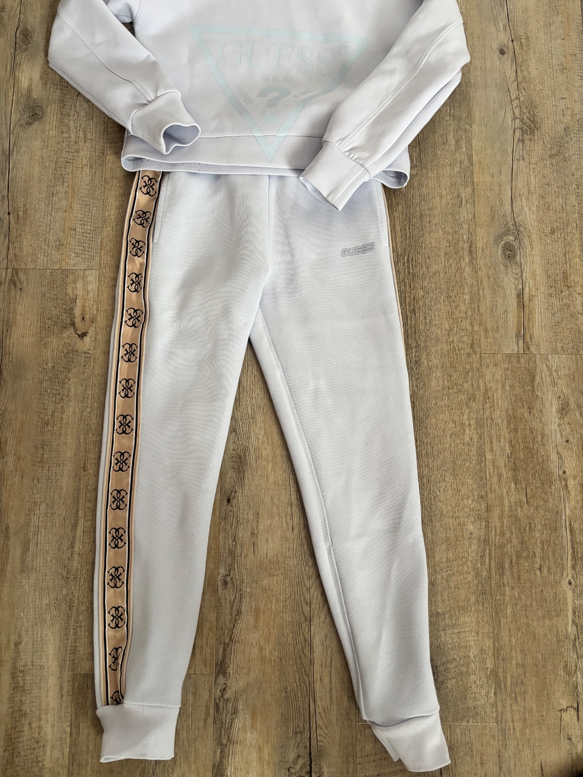 komplet mikiny a teplakov, velkost 140, size 10, original znacka GUESS, mikina nove s visackou a teplaky su zateplene oblecene 1x, kupovane v Nemecku