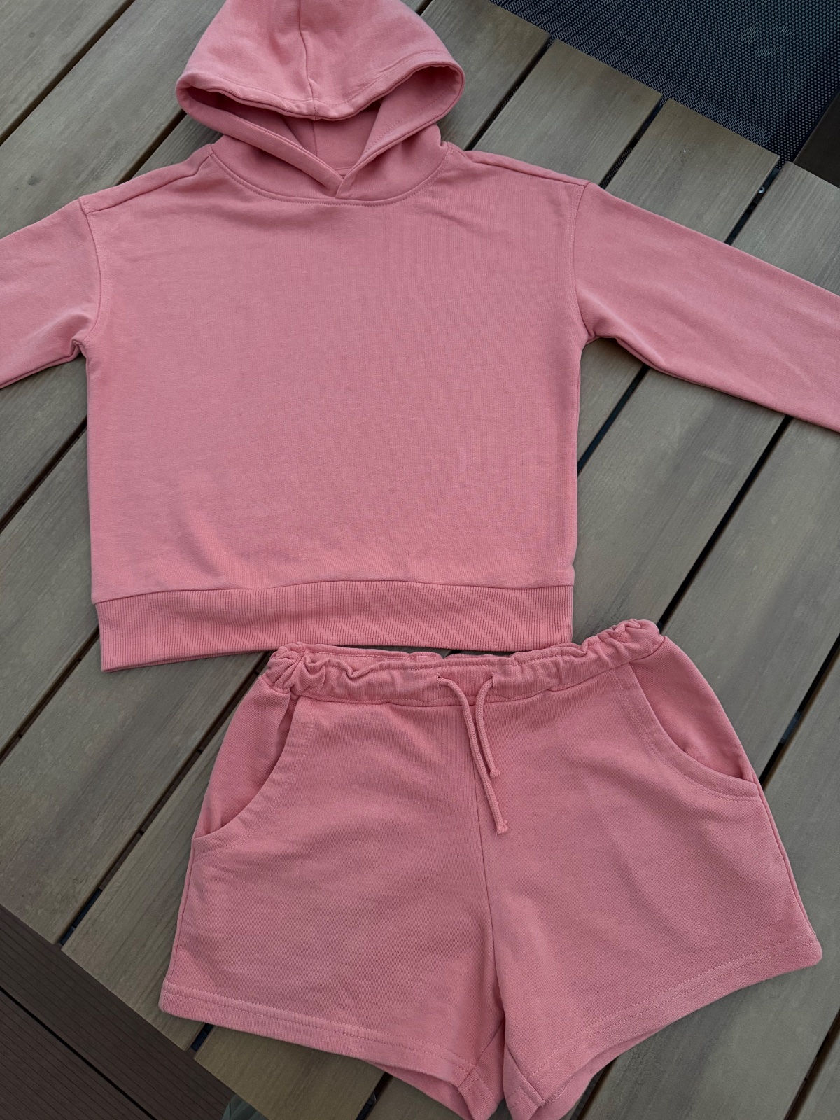 Mikina s kapuckou a šortky a vreckami a funkcnou snurkou