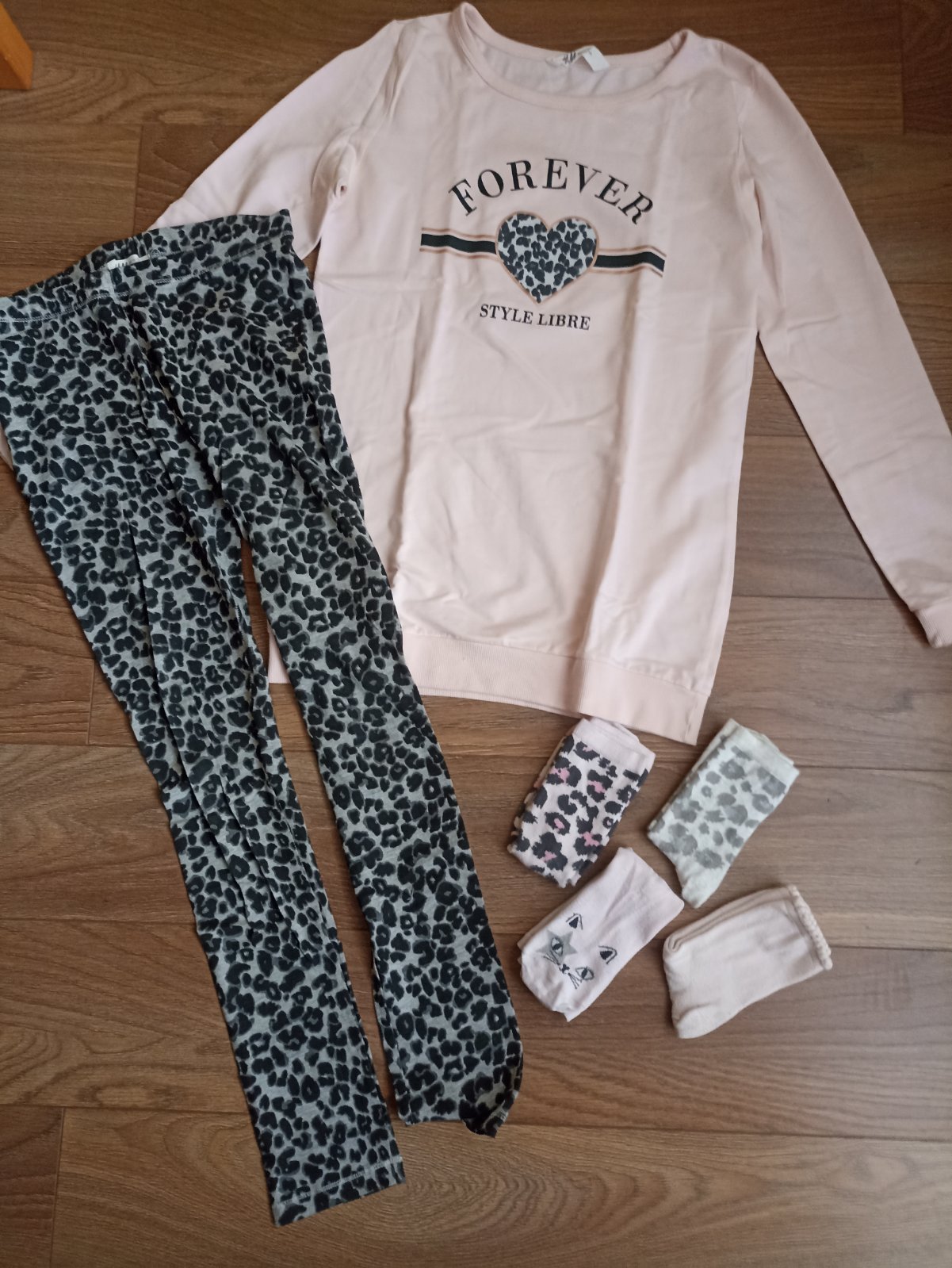 Ponúkam na predaj peknú nosenu neznicenu súpravu pozostavajucu z legin a predĺženej tenšej mikiny.