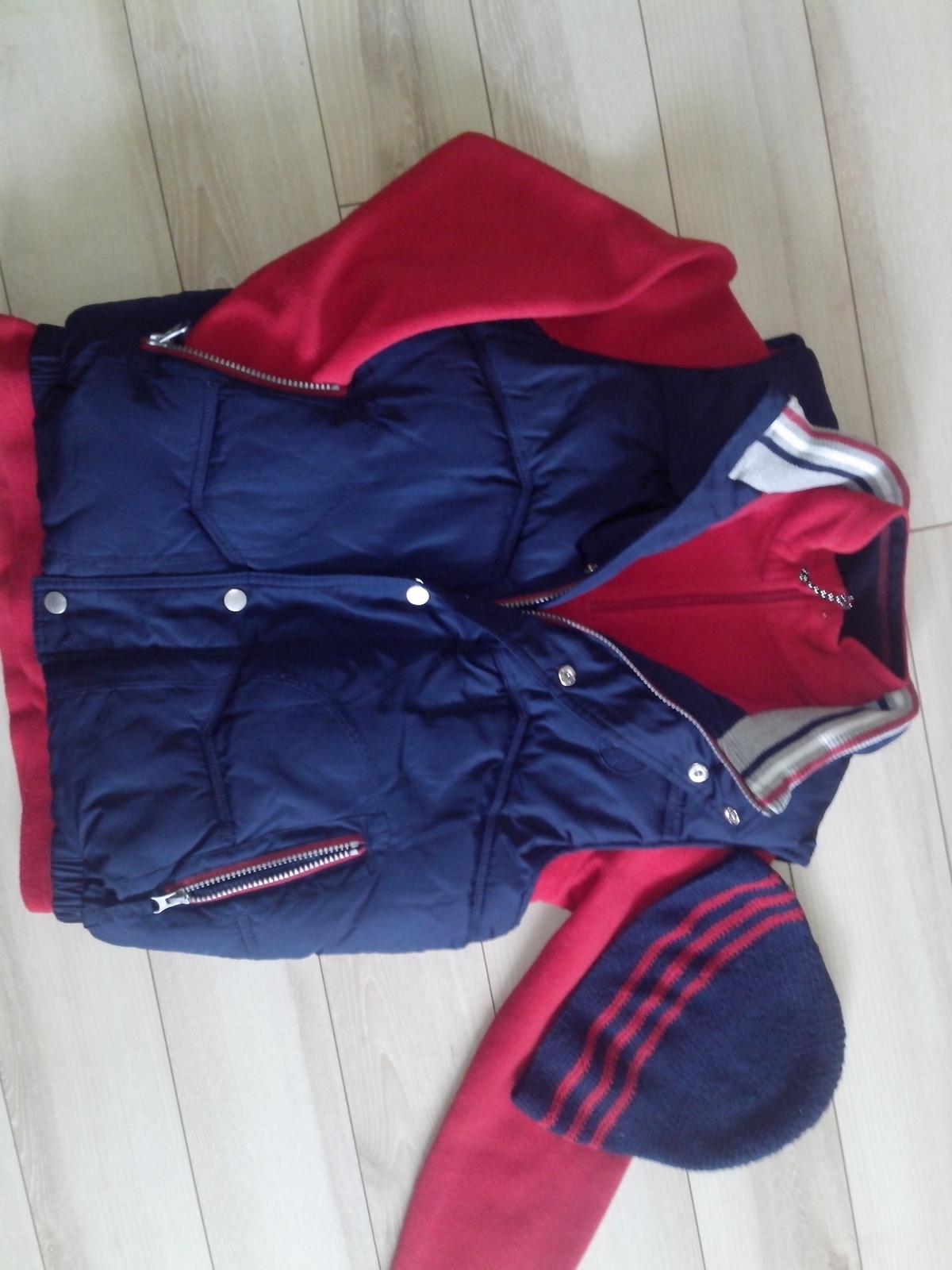 Zateplená vesta JJeans,dĺžka 56 cm, šírka 48 cm. Flísová mikinka quecha , d 60cm,š.45cm, rukáv od krku 66cm. Vecičky majú bežné známky nosenia a prania , farby sú krajšie ako na foto. háčkovaná čiapočka z priadze výška 21cm obvod v kľude 52cm. Cena spolu 9€+ pošta