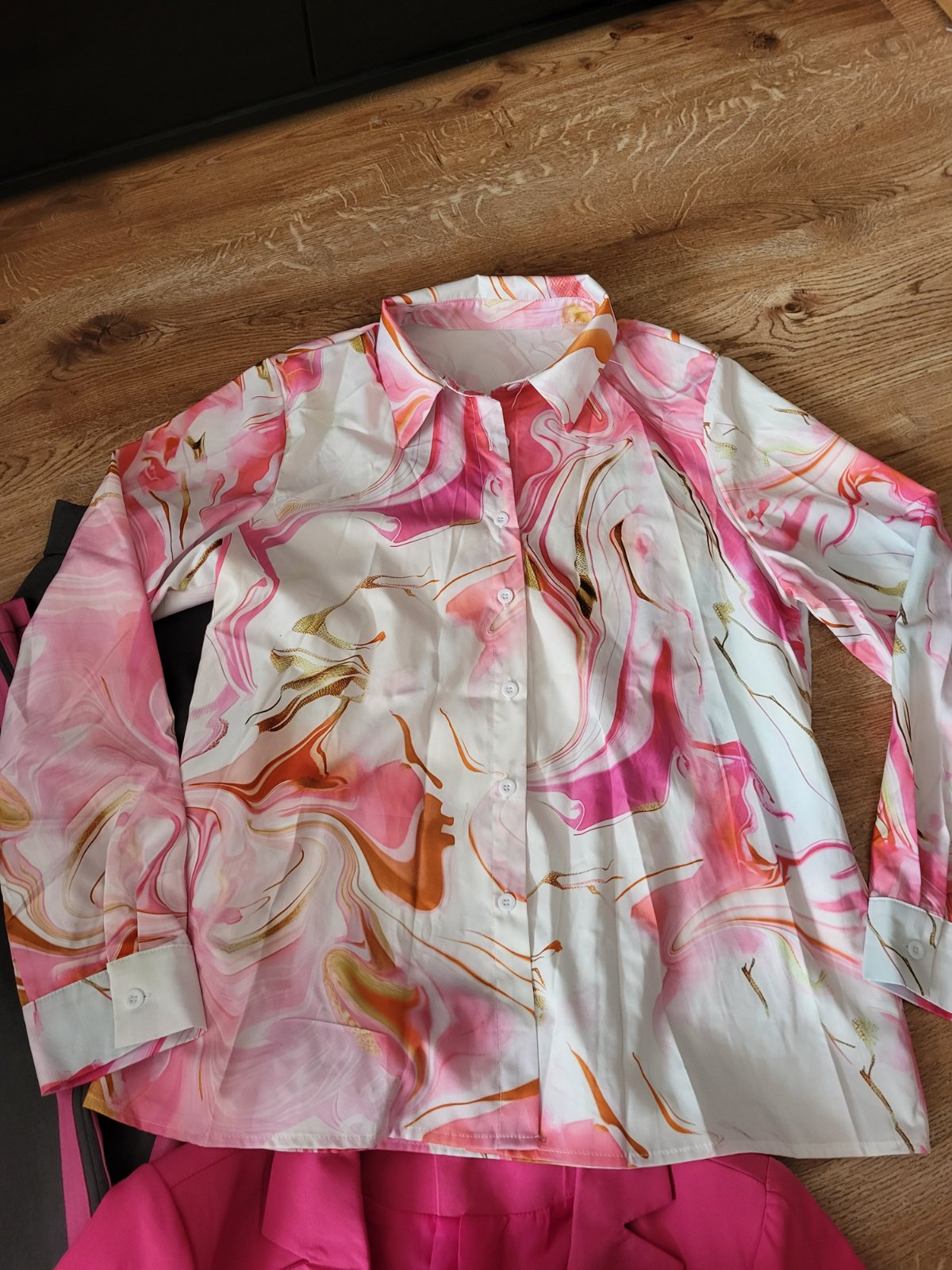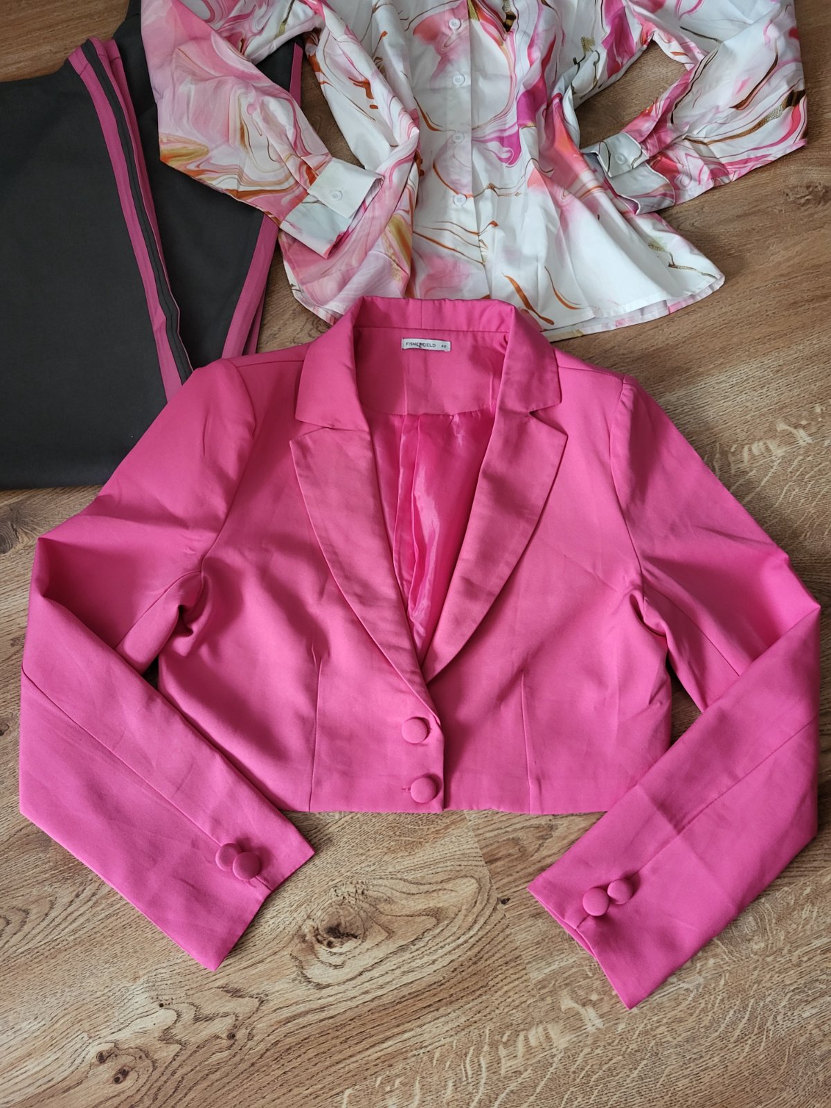 Všetko použité 1x ako komplet, už nevyužijem, vsetko je veľkosť L ale sadne aj na xl, široké nohavice vysoký pás, oversize blúzka, krátke sačko do pása, všetko ako nové