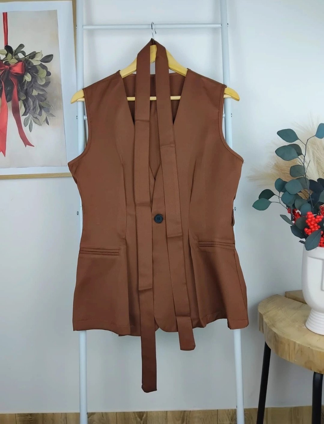 Perfektný komplet, ktorý vynosíte aj samostatne! Košeľa: dĺžka - 65 cm, šírka - 2x 50 cm v kľude, rukáv od krku - 72 cm. Vesta: dĺžka - 65 cm, šírka - 2x 60 cm.