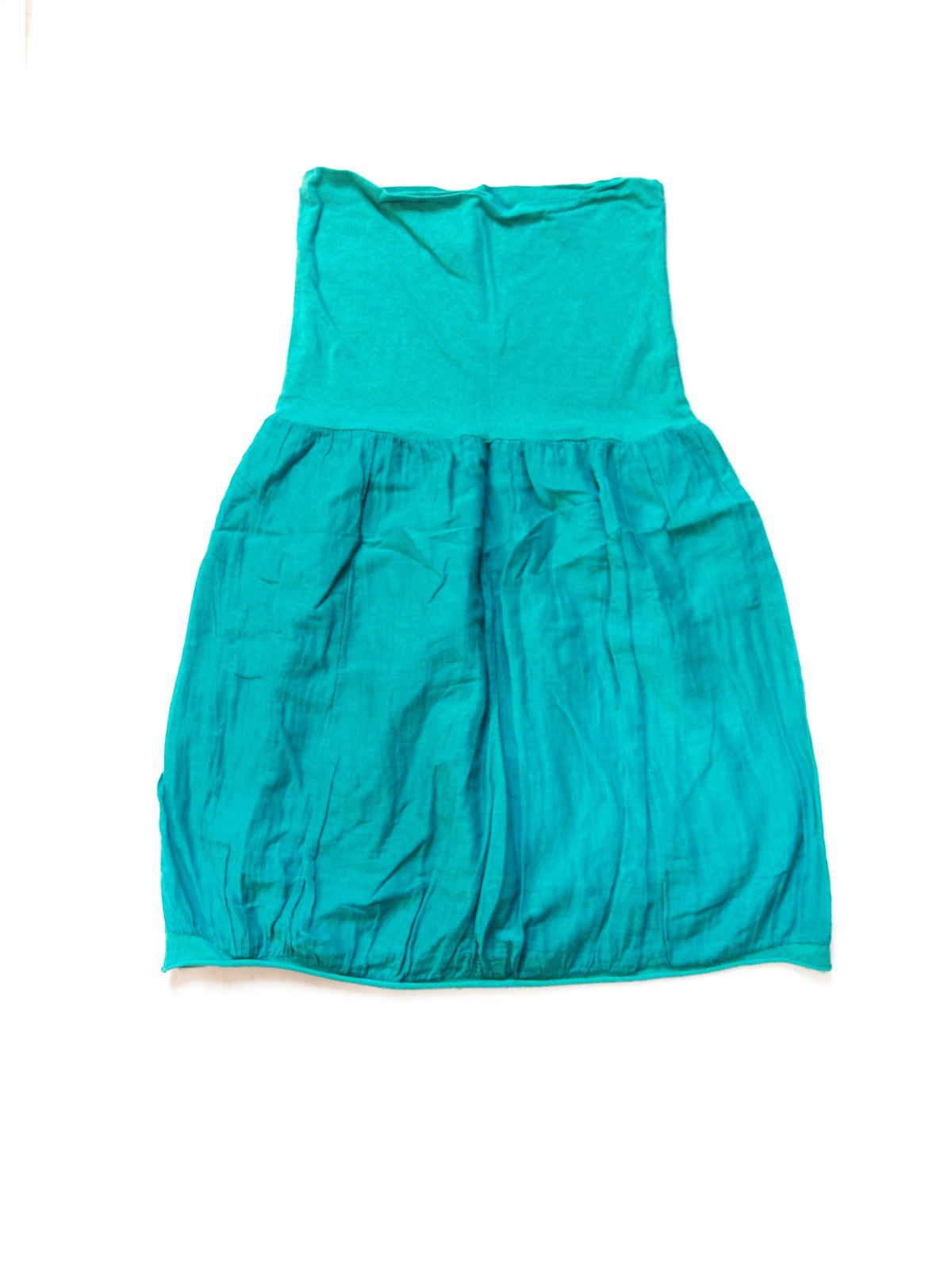 krásna tyrkysová suknička z jemného mäkučkého tenučkého materiálu (60% bavlna a 40% hodváb), podšitá, tiež jemnučkým plátnom, nepresvitá, je veľmi pohodlná, pás z elastickej tričkoviny sa dá buď prehnúť a suknička je kratšia alebo nechať tak a je dlhšia.. alebo regulovať podľa potreby - made in italy, odporúčam na veľkosť S