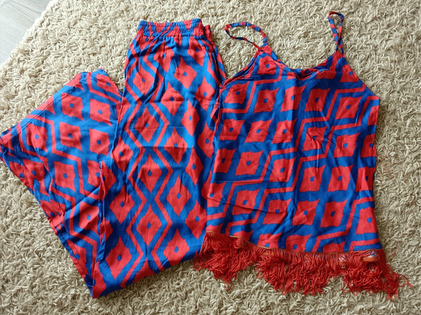 Dámsky komplet je od poľského výrobcu, je kvalitný, nekrčivý, ľahký letný materiál, nohavice v pase guma, vršok sa dá nosiť na viacero spôsobov - do pasa, ako nadpupkový, ramená možno odhaliť al...