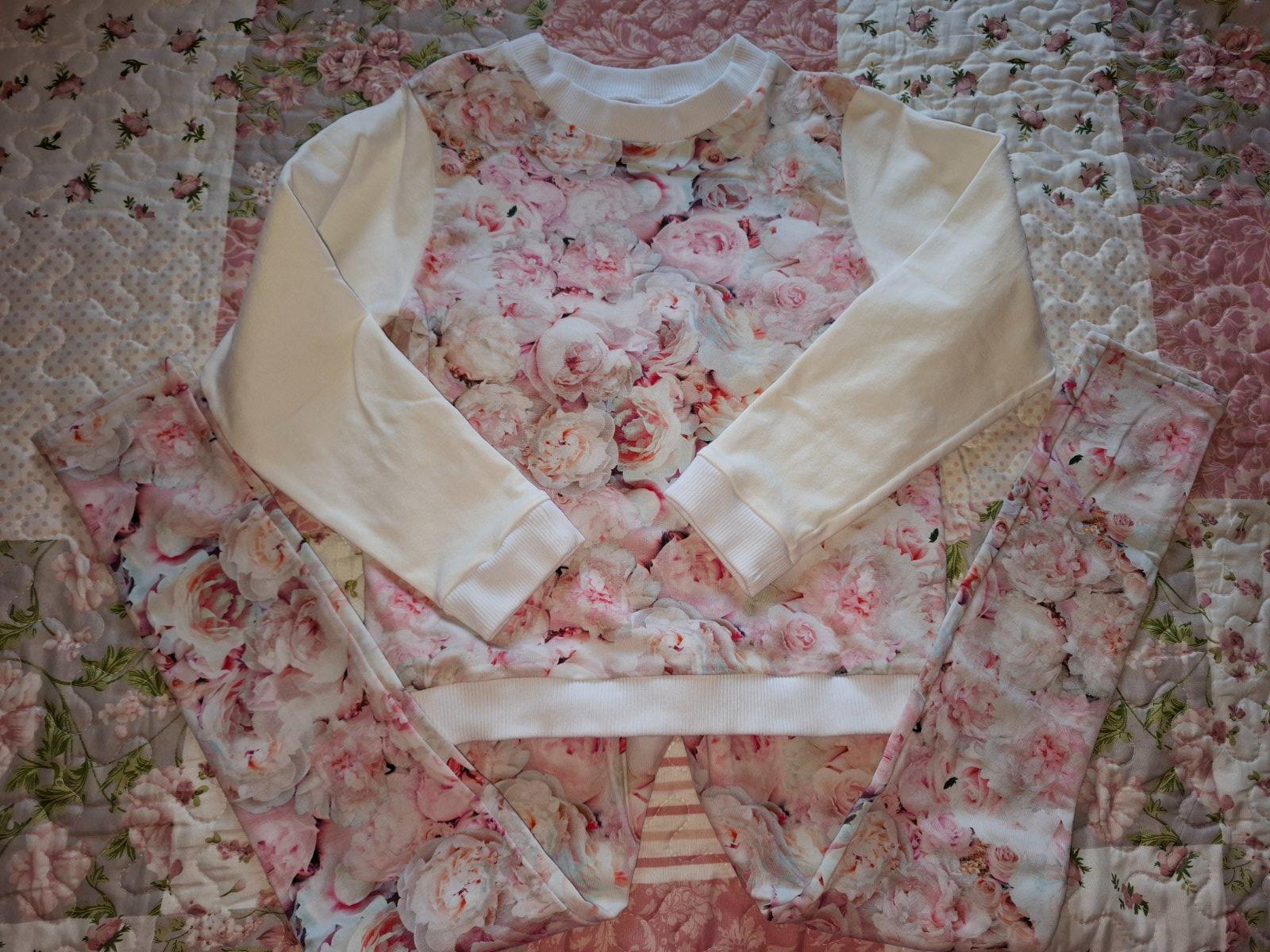 Nádherný komplet pre slečnu, ktorý tvoria štýlové široké nohavice a tricko s dlhým rukávom Komplet je NOVÝ s výsačkou Voľný je komplet 128/134 Dĺžka trička 46,5cm, meraná od krku stredom chrbá...