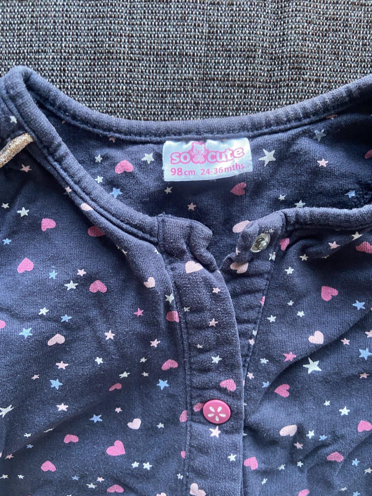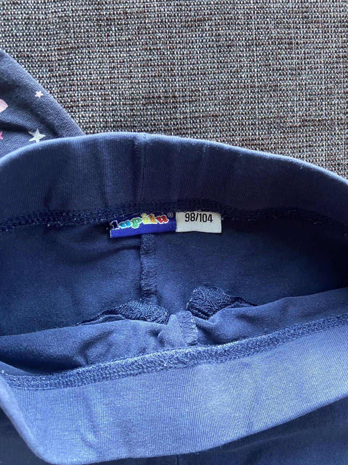 Vyskladaný celý outfit, stačí doplniť nejakou tmavomodrou sukničkou :) Mikinka So cute, so srdiečkami a hviezdičkami sa výborne nosí aj kombinuje, tričko F&F so zaujímavým detailom na prednom aj zadnom dieli, nohavice Lupilu so štýlovými zipsami a krásne pančuchy H&M, čo sú ako nové. Veľkosť písaná 98/104, cena za všetko komplet, bez pošty
