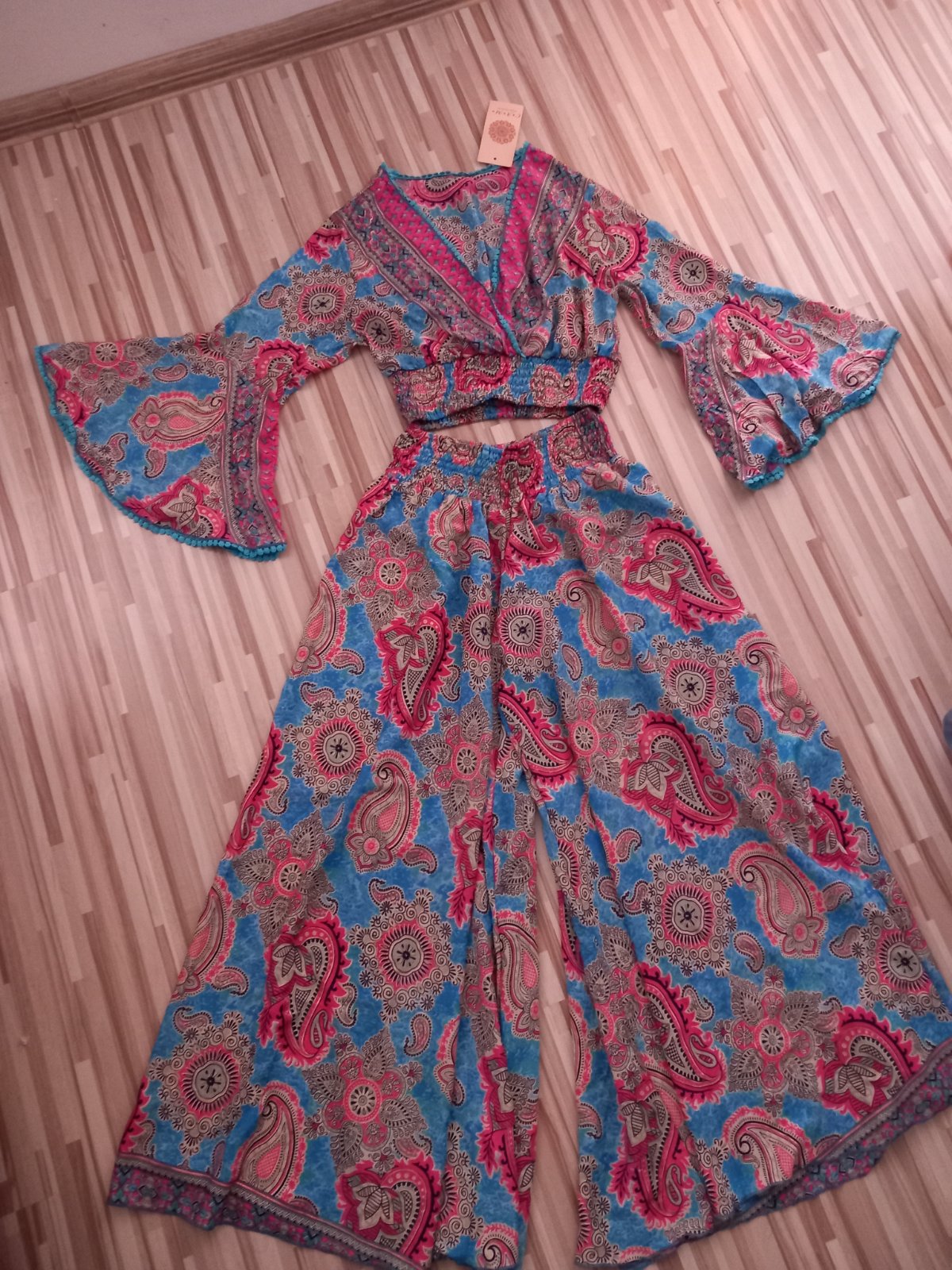 Nová s visačkou. Veľkosť UNI sadne na M-L.Lahulinká chladivá látka na letné večeri.Nohavice a blúza.
