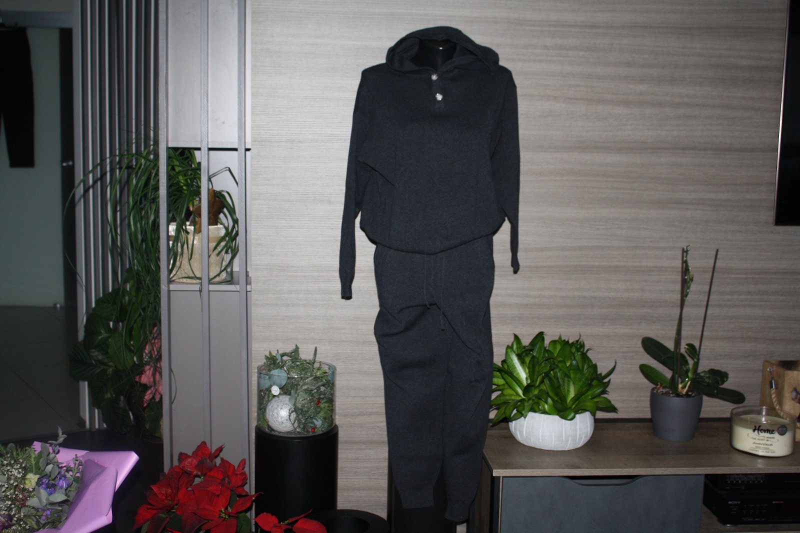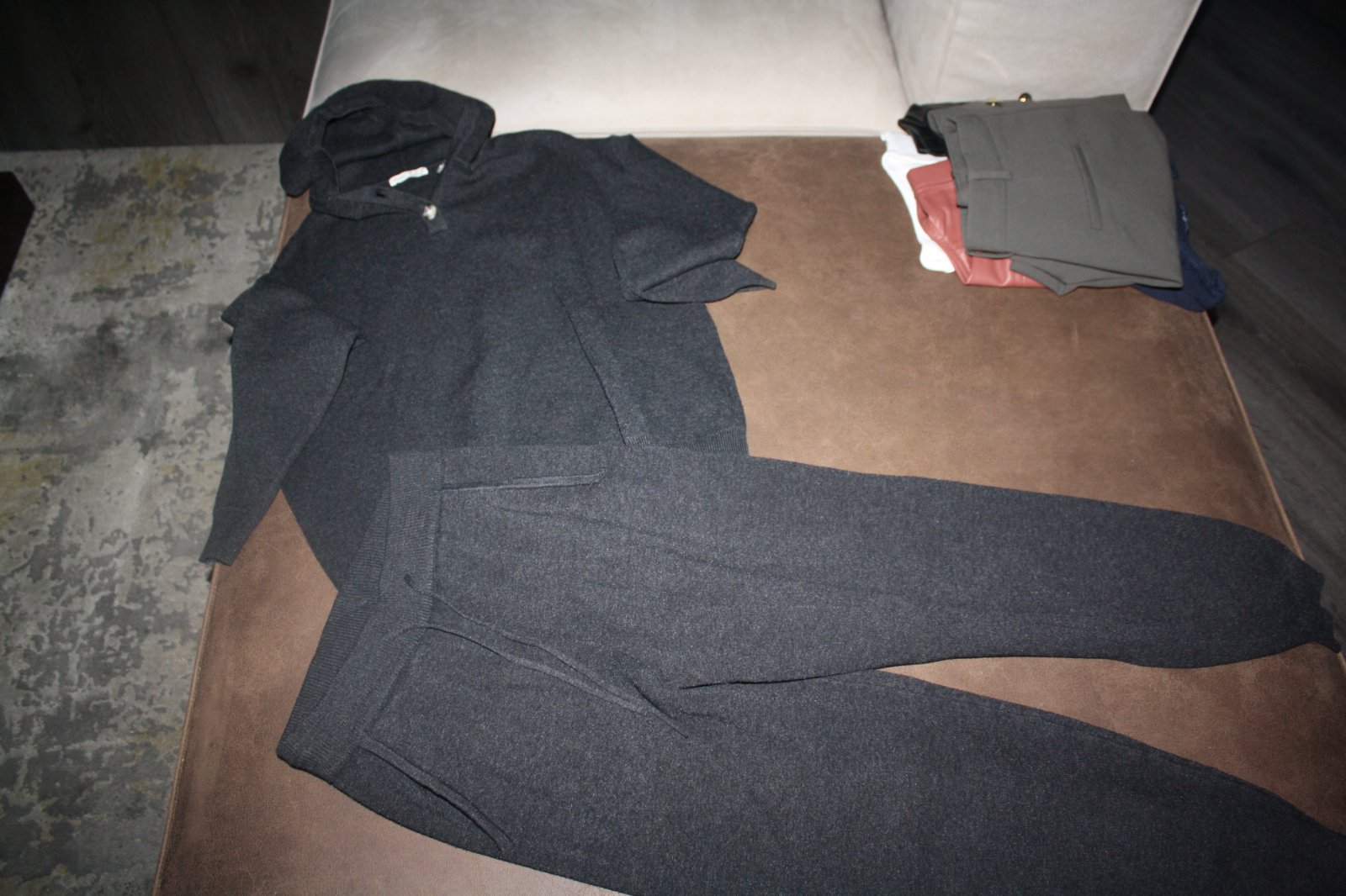 Pekny, minim.noseny, ideal od jesene do jari-na prechodne , ale aj zimne obdobie, nohavice su XS, ale pruzne, cize sedia skor ako S , vrch S - pozri rozmery