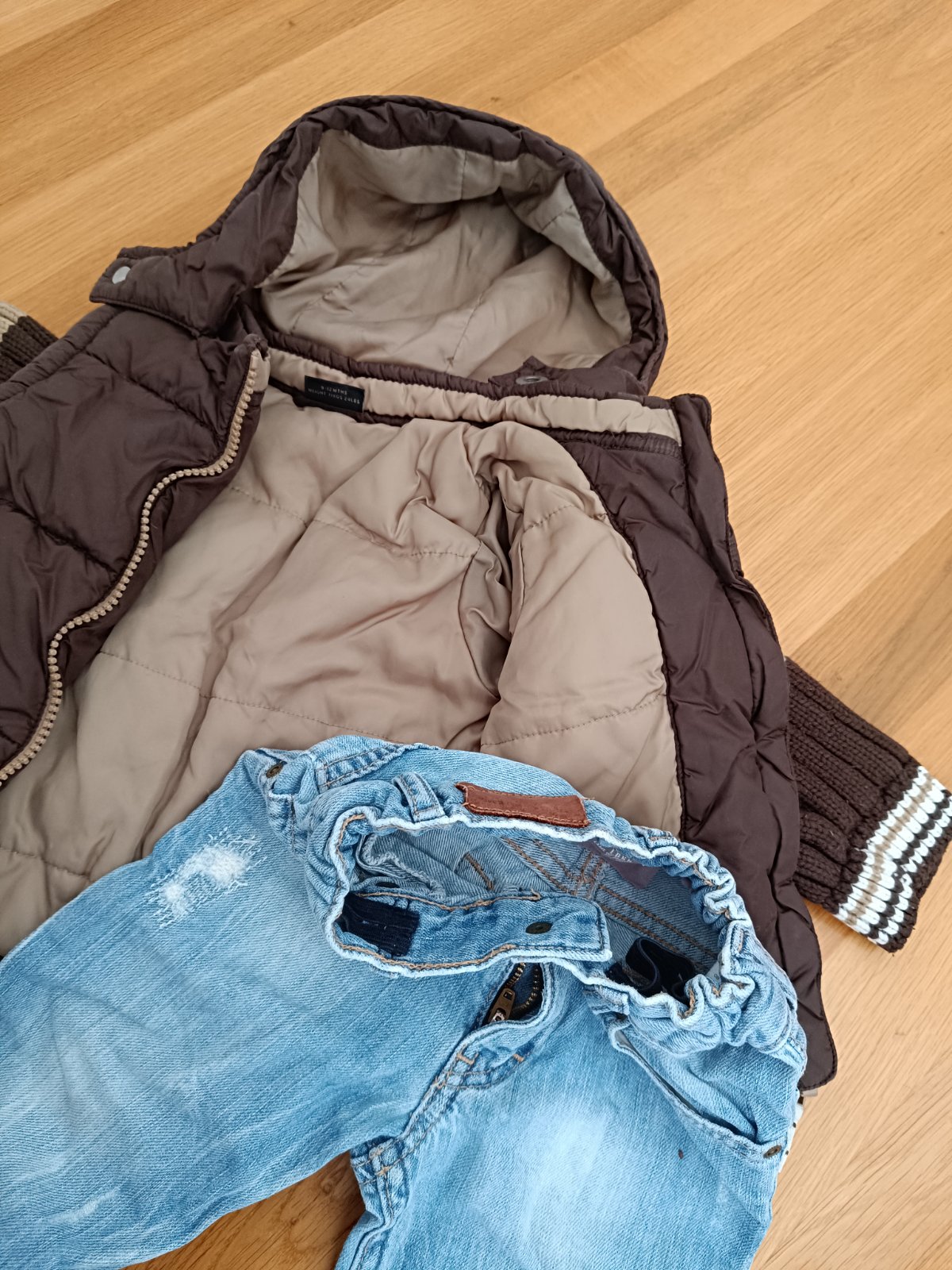 Set pre chlapca na jar alebo jeseň. Bundička Next oteplená. Nohavice H&M nastaviteľné v páse gumičkou. Bez poškodenia