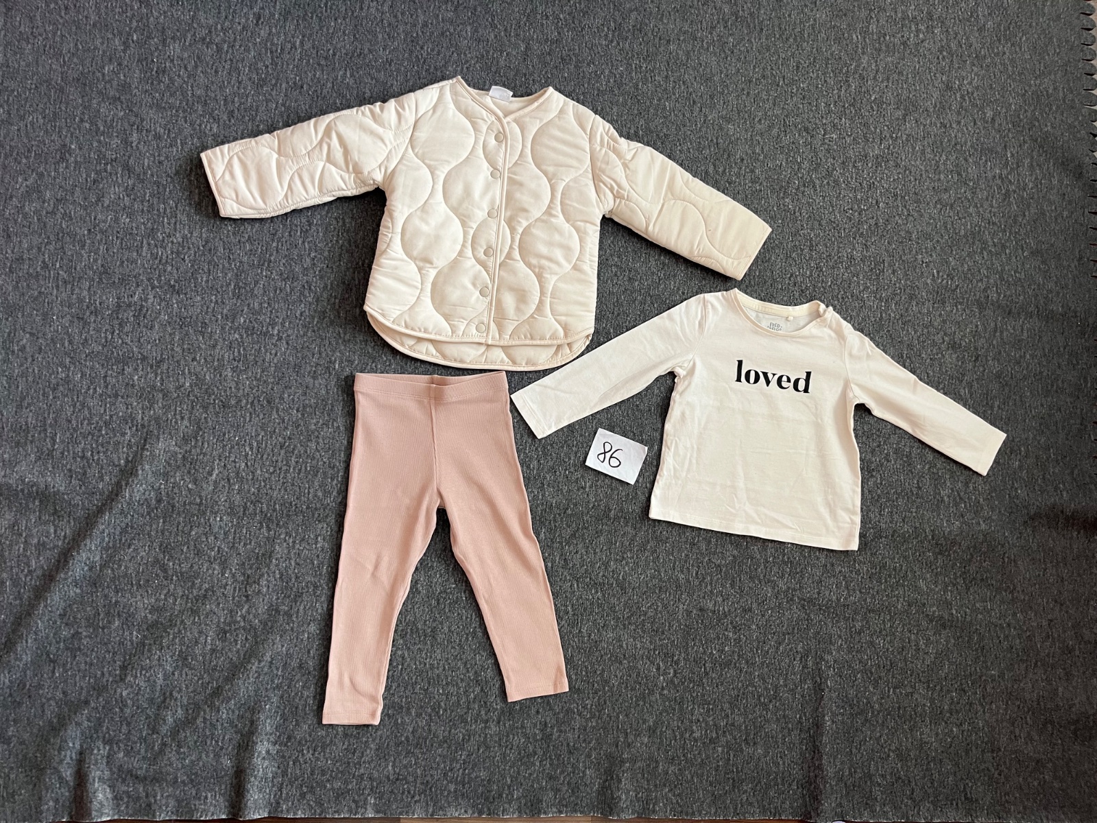 len opraný nenosený Set prechodnej bundička, trička s dlhým rukávom a legín. Veľkosť 86