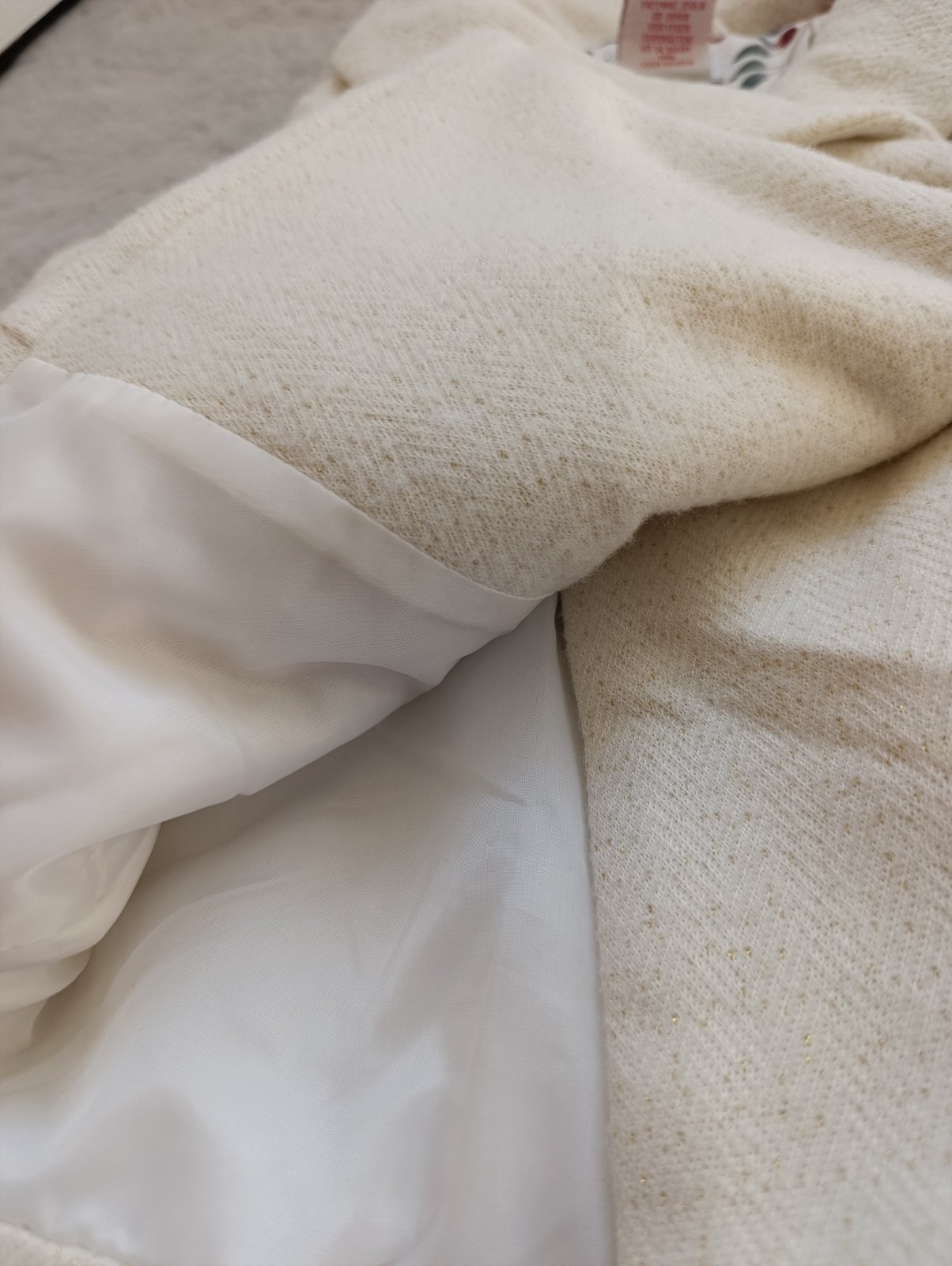 Predám tento 3set za 7€. Kabátik bol len raz použitý v kočíku, je prepletený zlatou niťou.