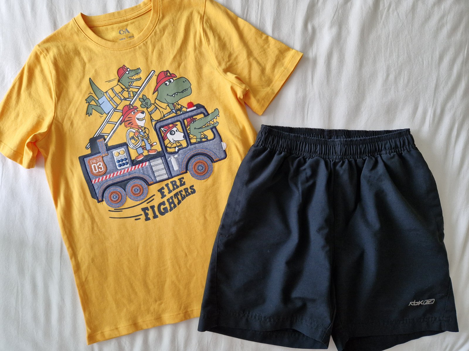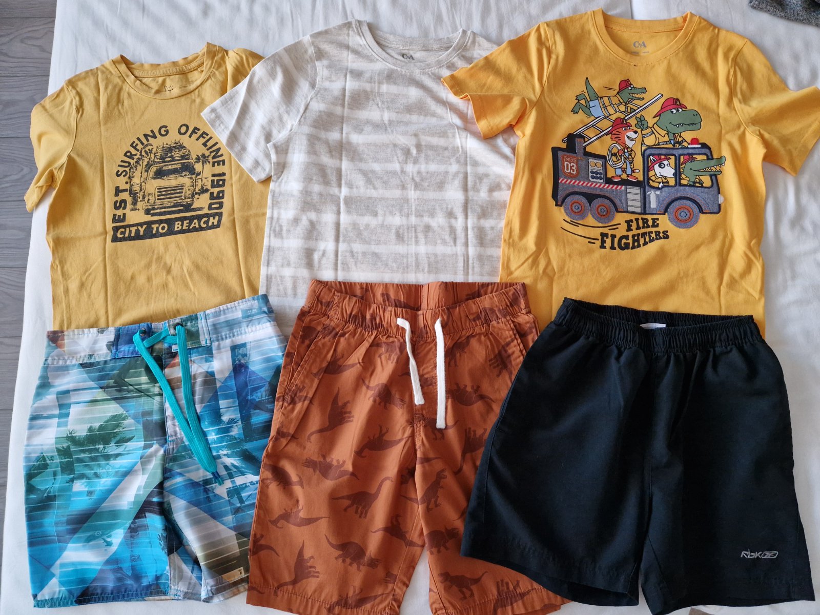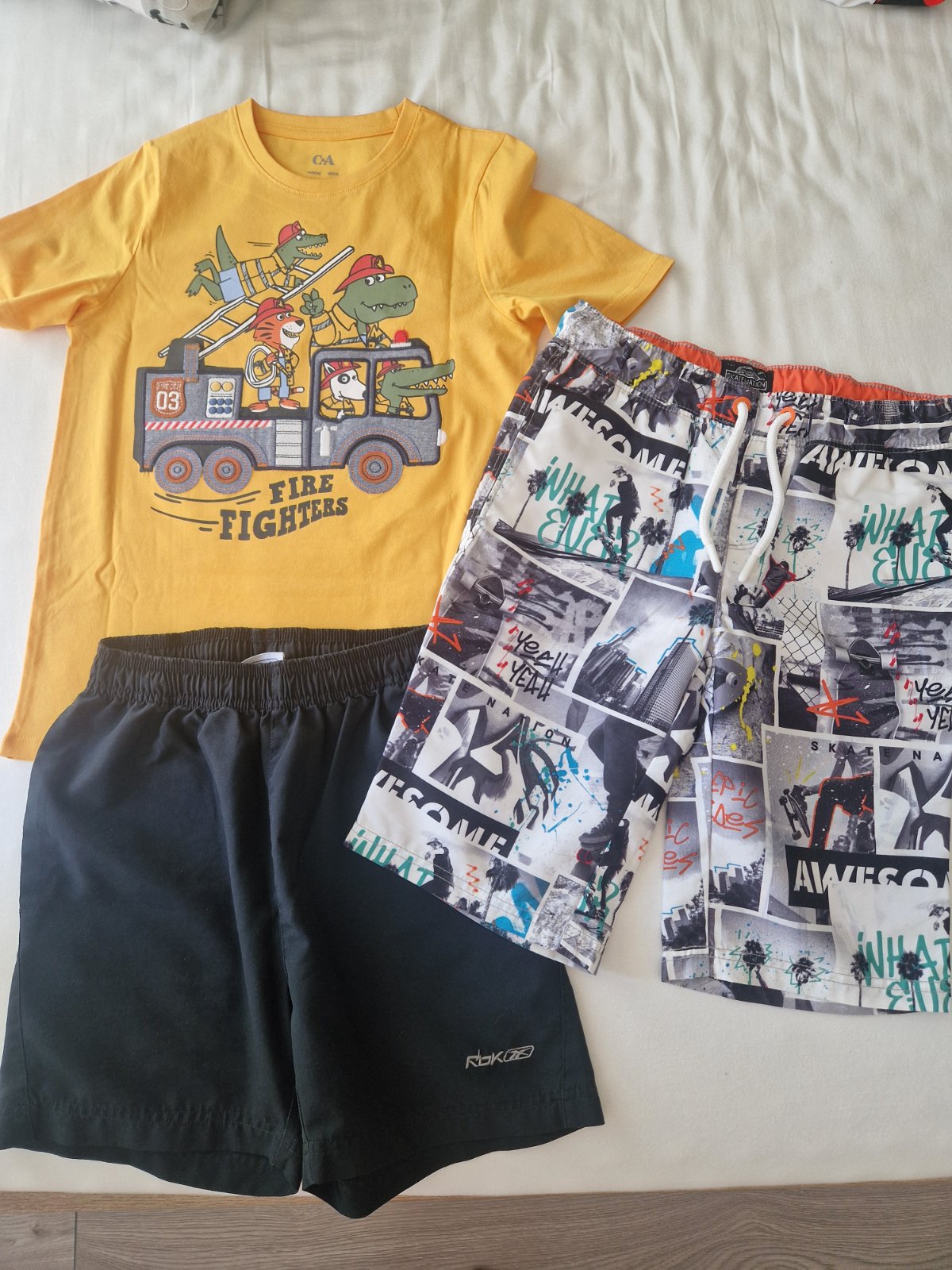 - zlte triko nenosene + cierne reebok kratase (kratase maju malicku, takmer neviditelnu dierku) + obrazkove kratase s kapsami skate nenosene....cele na druhej foto