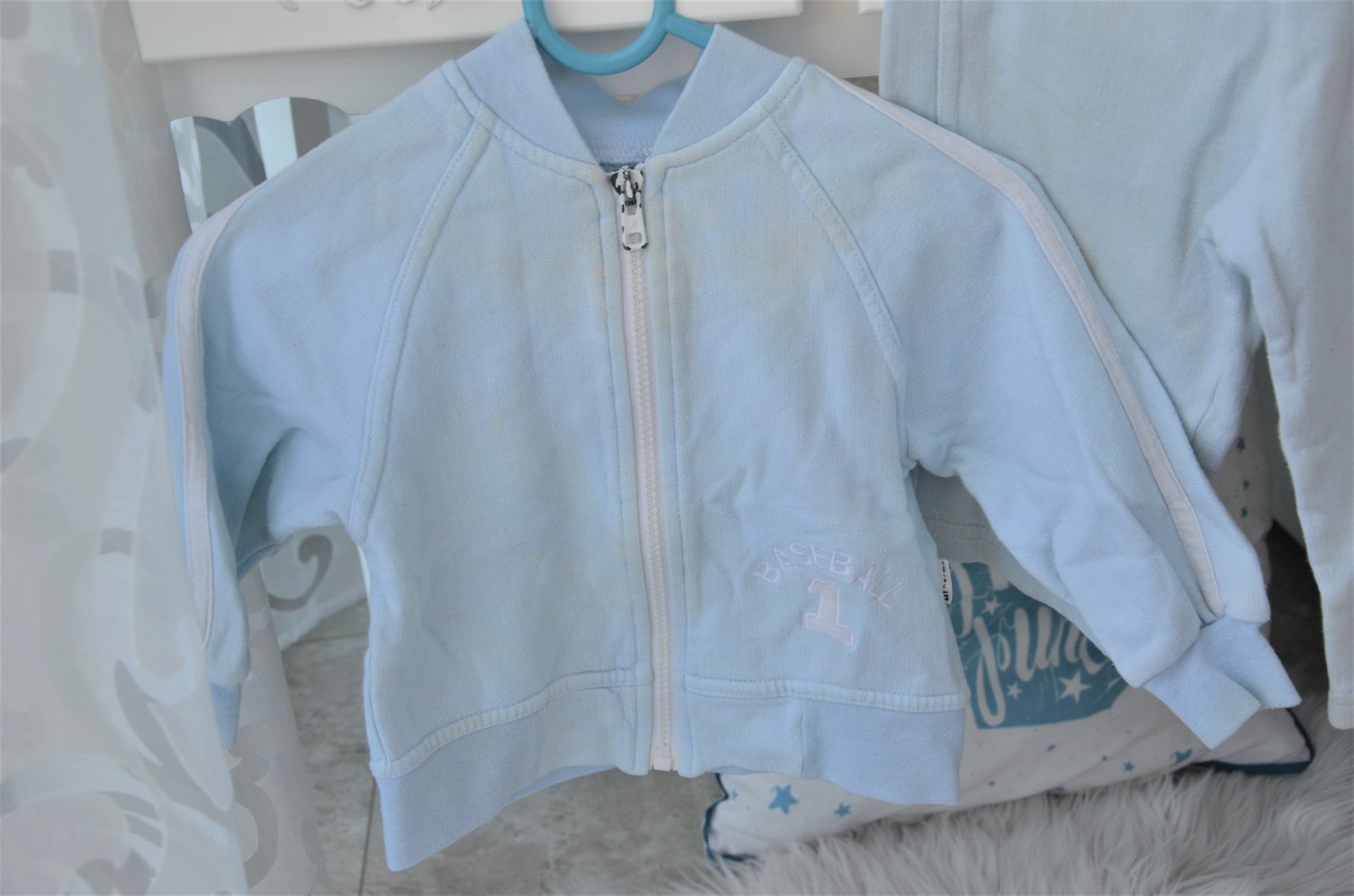 nevymieňam!!nosená,hrubšia,miestami malé žmolky,materiál 100%bavlna,rozmery-dĺžka mikiny 33cm,šírka 2 x 31cm,rukáv-celá dĺžka 31cm,tepláky-dĺžka 41cm,pás v kľude 2 x 19cm,v páse je guma,bledomodrá farba..kuk aj na iné moje inzeráty