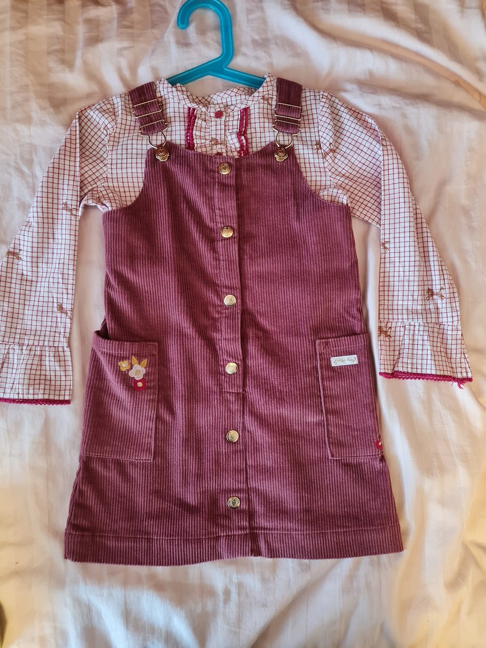 Krásny set - menčestrové šaty + blúzka + svetrík.