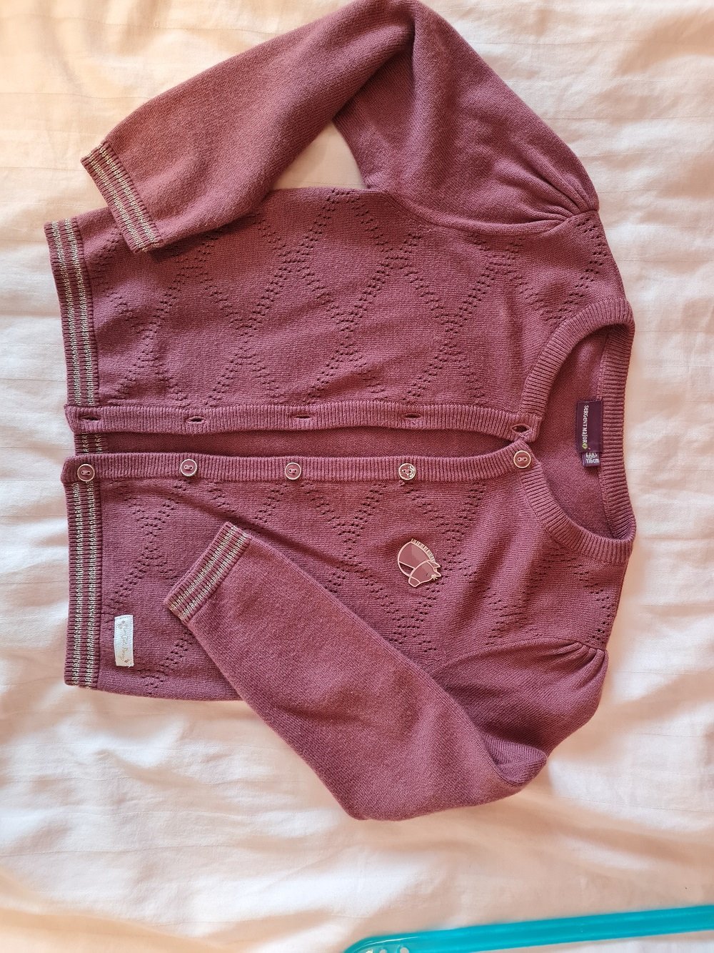 Vyskladaný kompletík vhodný do škôlky,nosený, vo veľmi dobrom stave. Na jednotlivých kusoch uvedená veľkosť 104/110, no skôr 110, prikladám miery: Suknička Terranova ( "tepláková"), farba vínová, d...