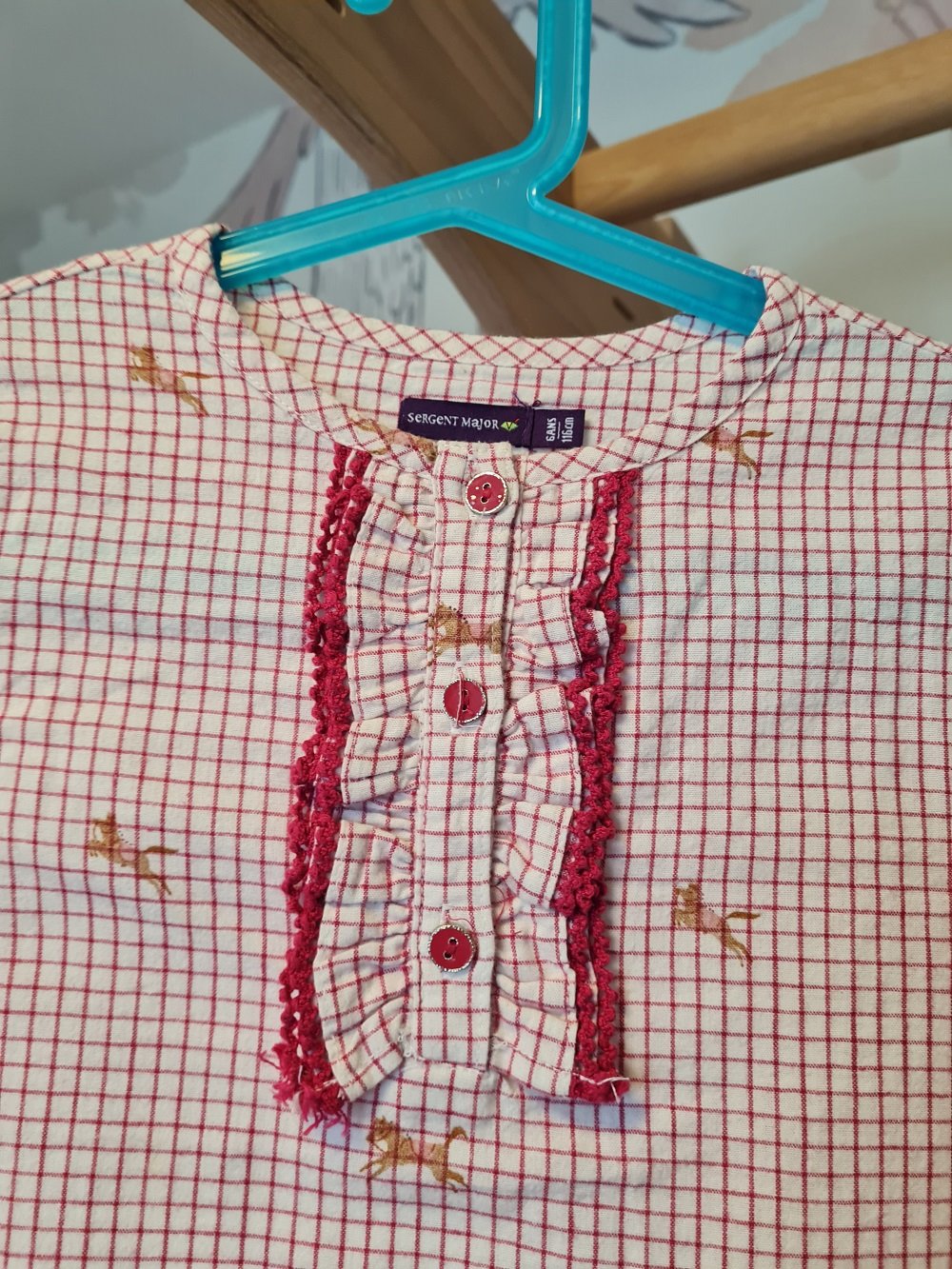 Ponukam krásny komplet suknička a ľahká bluzka,super sa da kombinovať s bielou,žltou,ružovou,modrou. Vhodne na prilezitost alebo aj bezne nosenie. Obliekli sme od 104-116. 🔝 stav.