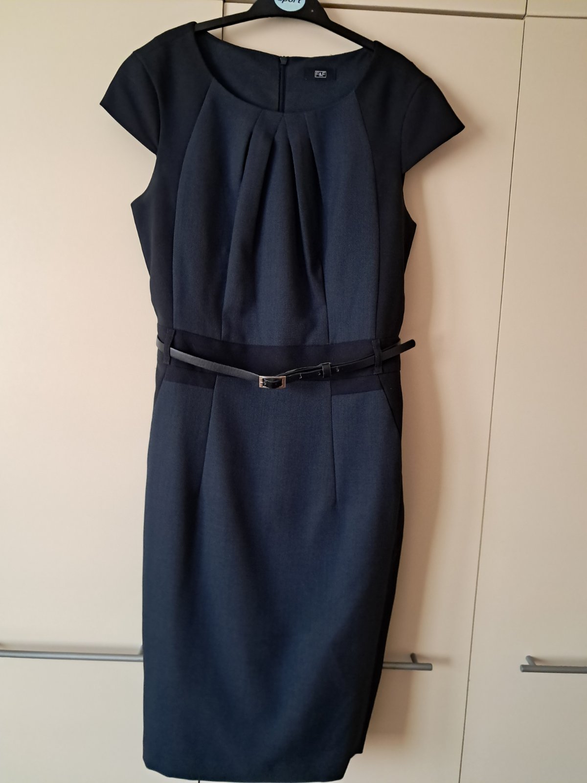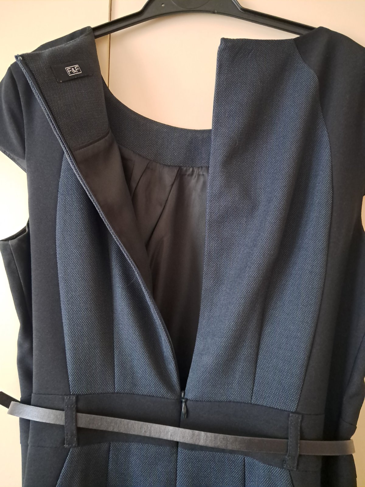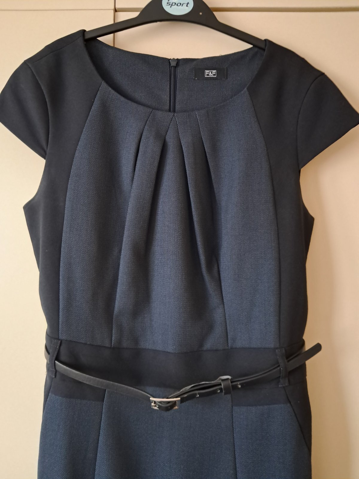 Predám komplet šiat a saka. Šaty oblečené 1x , sako vôbec, má ešte zašlité vrecká. Kombinácia tmavomodré a čiernej. Kvalitné vypracovanie, podšité. Predaj iba spolu. Rozmery na visačkách.