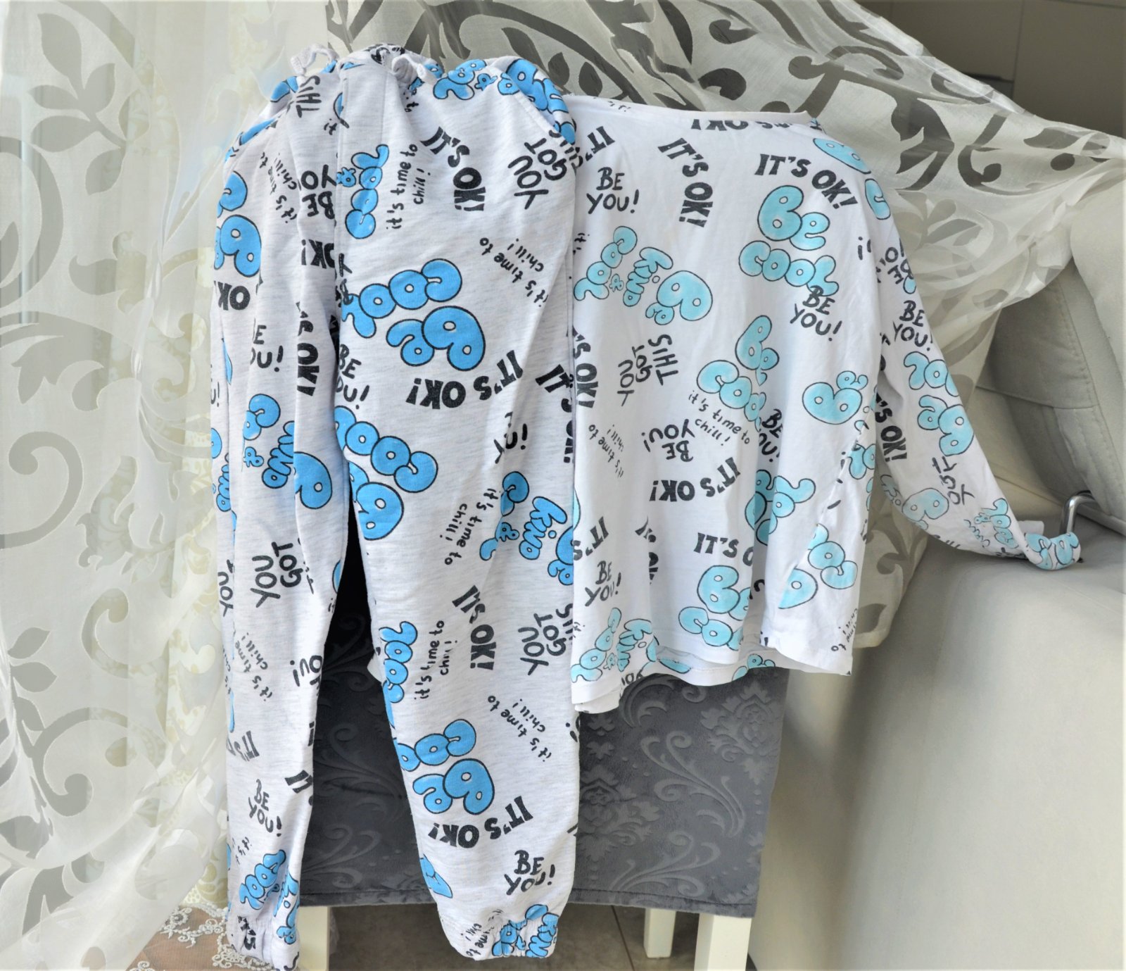 súprava je nosená-tepláky nosené málinko,tričko viac-tepláky sú bavlnené,hrubšie,v páse je guma,ktorú som musela viac zatiahnuť,nakoľko malému padali,dá sa samozrejme povoliť-dĺžka teplákov 69cm, pás 2x18cm,tričko bavlnené-nosené viac,hore ako je pliecko sa rozpáral šev,je to tam zošité-viď foto-dĺžka 46,5cm,šírka pod pazuchami 2x 34cm,rukáv od ramena 41cm...kuk aj na iné moje inzeráty