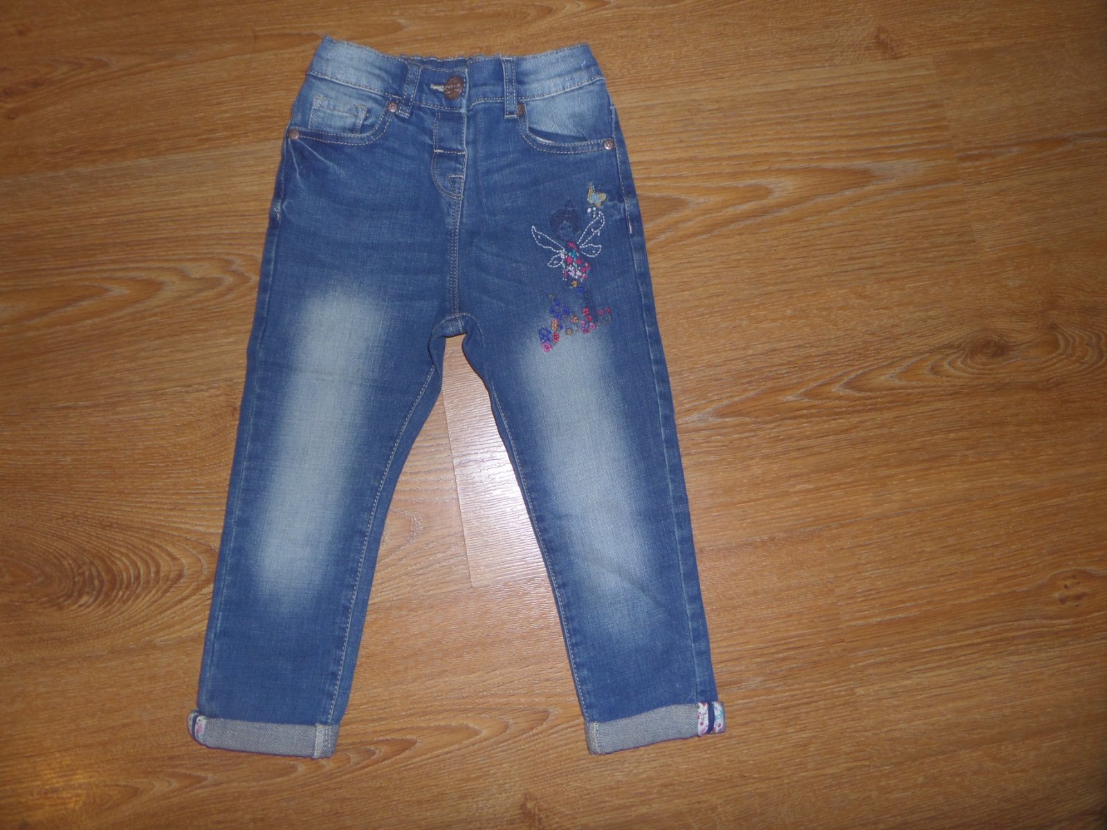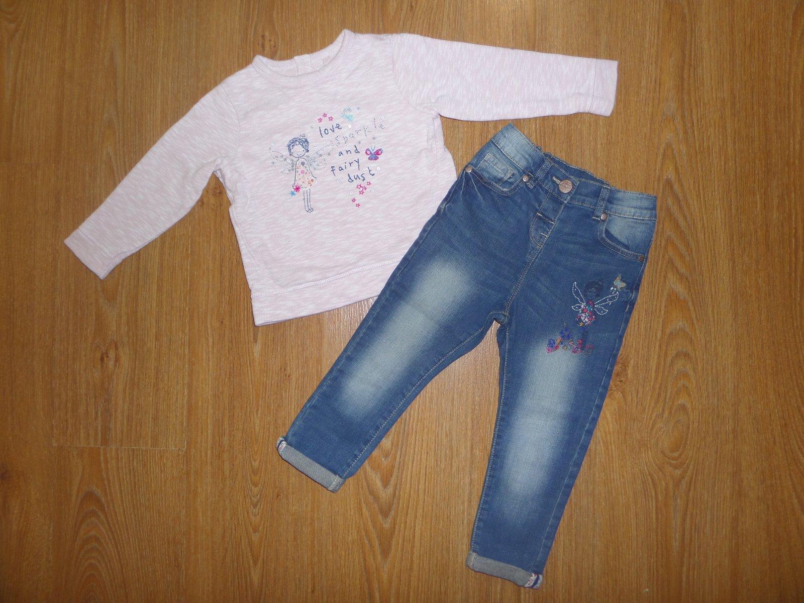 Krásna súprava s vyšívanou vílou na rifliach a na mikine, ako nová.