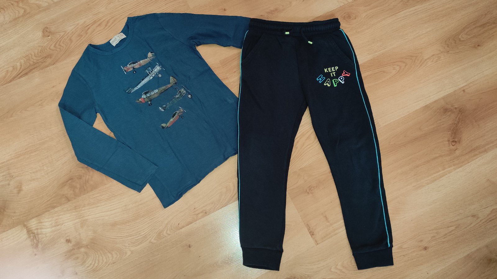 Ponúkam na predaj pekne bavlnené veci pre chlapca. Nosené neznicene, teplacky pár krát oblečené, nesprane, bez zmolkov, kolienka neosuchane. Tri ko nosené, neznicene used efekt. Cena 7 eur.