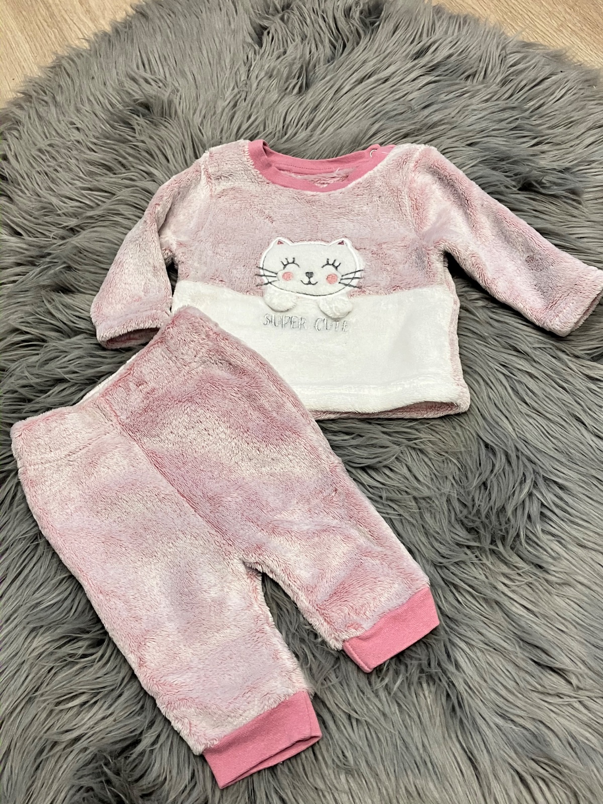 Dievčenská huňatá súprava mikina a nohavice, elastické, veľkosť cca 62.