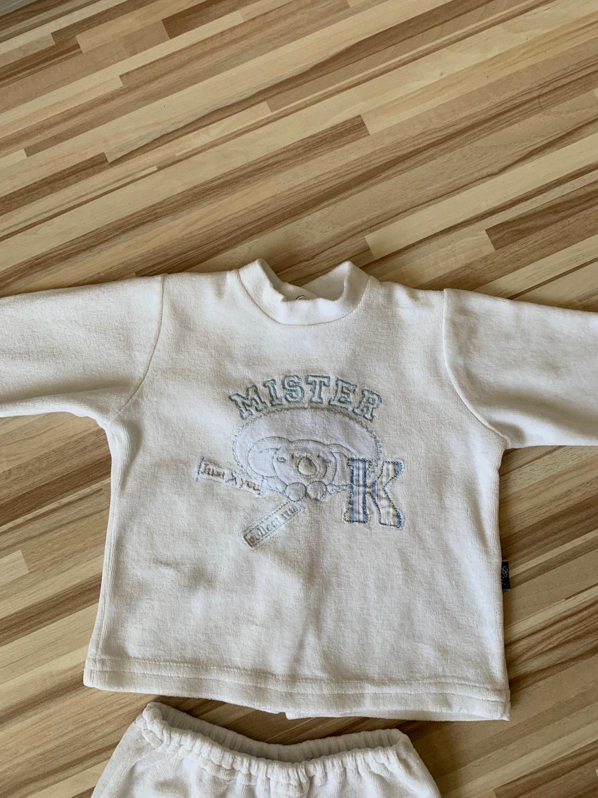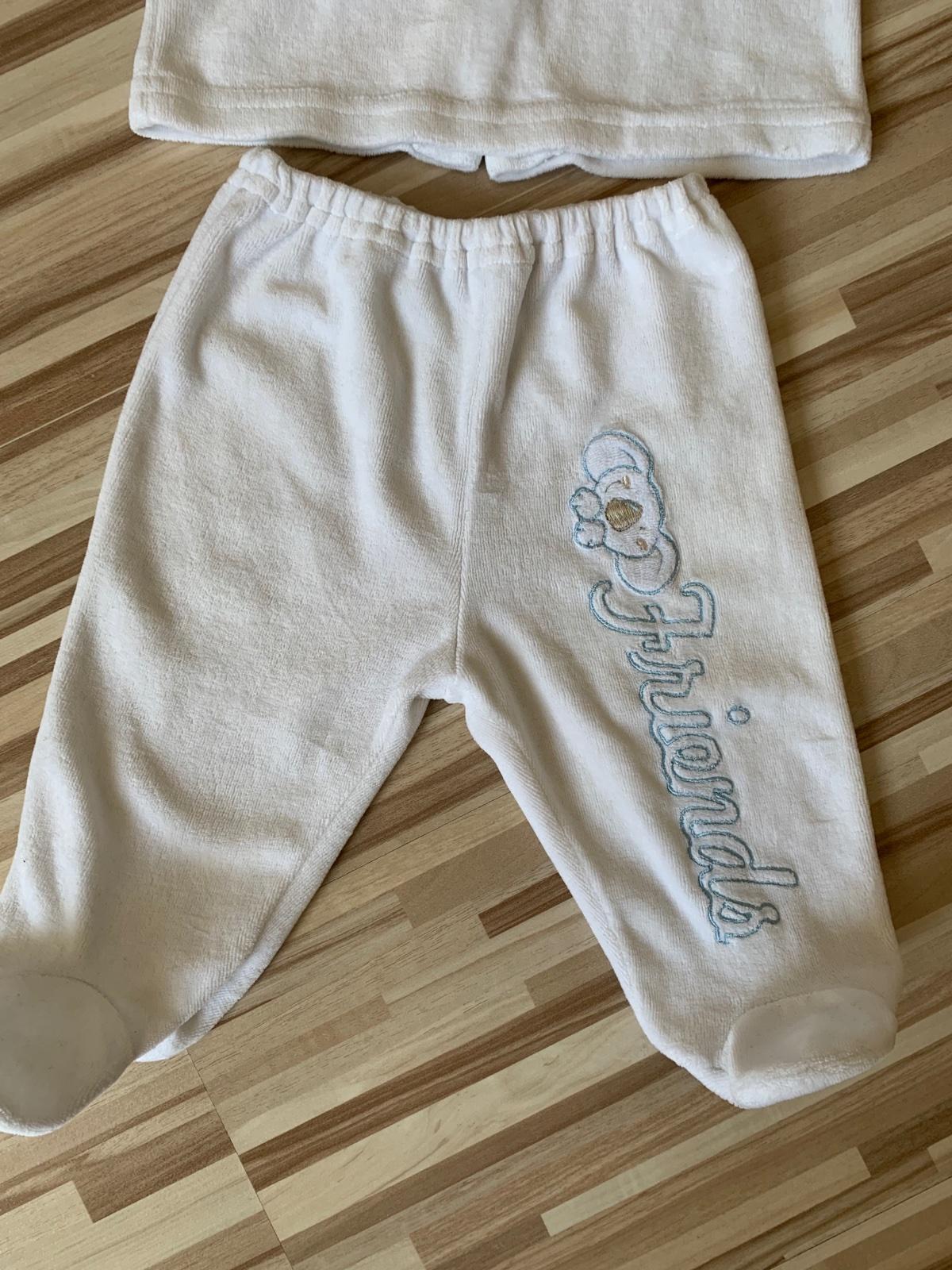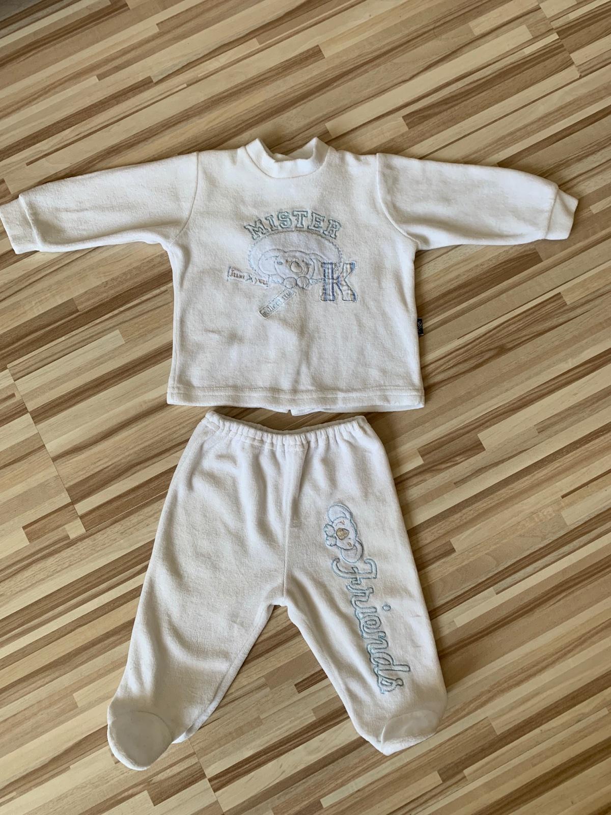 Predam krasnu velurovu supravu talianskej zn. Cicicoco v bielej farbe vhodnej pre chlapca i dievca. Velkost uvedena na visacke je pre dieta vo veku 0-3 mesiace, cize 62, ale nositelna je podla mna aj dlhsie - zhruba do velkosti 68, vid prilozene rozmery. Suprava je vzhladom na material velmi prijemna na dotyk, teplejsia a zdobia ju velmi mile aplikacie a vysivky. svetlomodrej farby. Je v TOP stave, bez akychkolvek chyb ci inych poskodeni. Oblecena bola parkrat. Urcite odporucam! Materialove zlozenie je 80% bavlna a 20% polyester. Rozmery: nohavice/polodupacky - celkova dlzka je 35 cm, vnutorna je 19 cm a sirka v pase je 20 cm - gumicka povoli aj do 30 cm; mikina/kabatik je na cvocky na zadnej strane - celkova dlzka od ramena je 29 cm, sirka pod pazuchami je 26 cm a vonkajsia dlzka rukava od ramena je 22 cm, vnutorna je 17 cm. Predajna cena kompletu je 3,50 eur plus postovne podla vlastneho uvazenia. Osobny odber je mozny na sidlisku Rozkvet v PB.