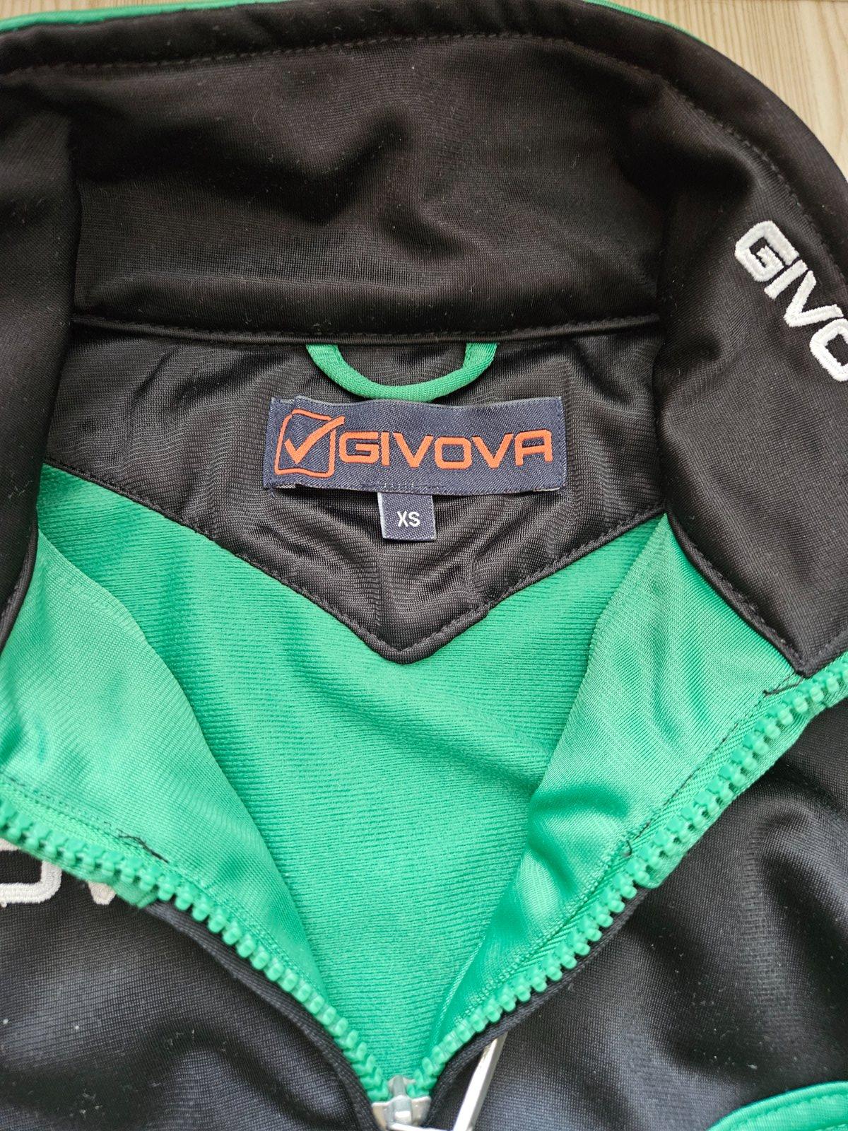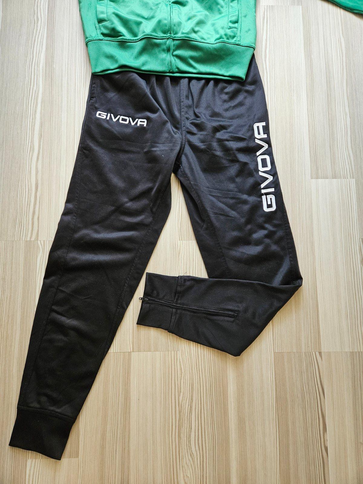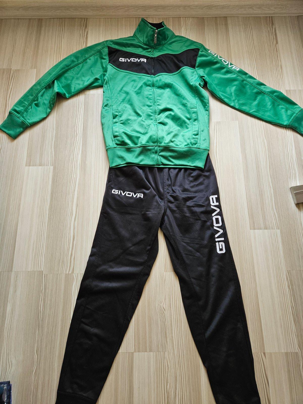 Tréningová súprava značky Givova, veľkosť XS zodpovedá 156-165. Vzadu na teplákoch zipsy. Na bunde v oblasti celého pásu žmolky od zimnej bundy, inak veľmi zachovalá-málo nosená.