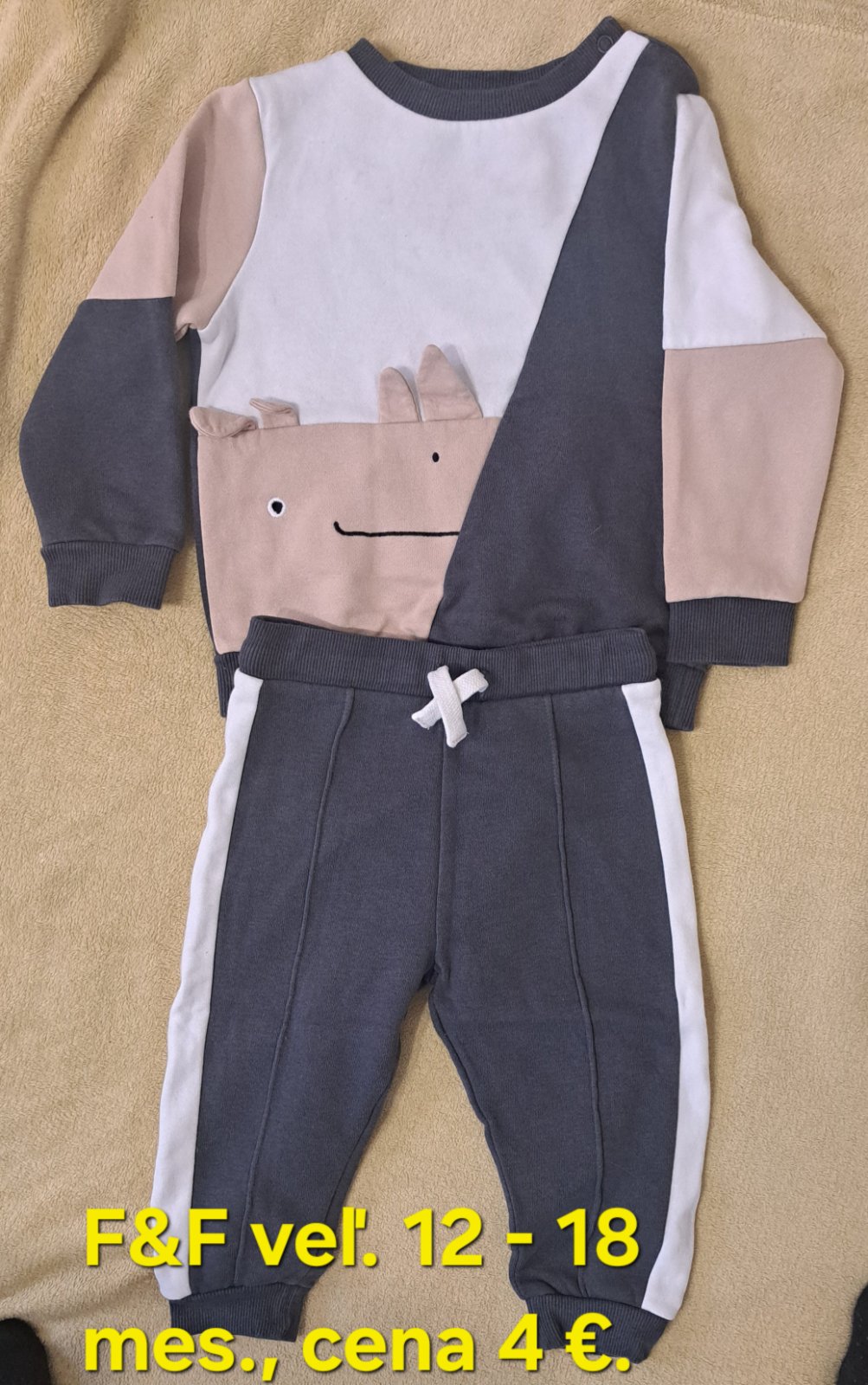 Predám teplákovú súpravu F&F, veľkosť 12 - 18 mes., cena 4 €.