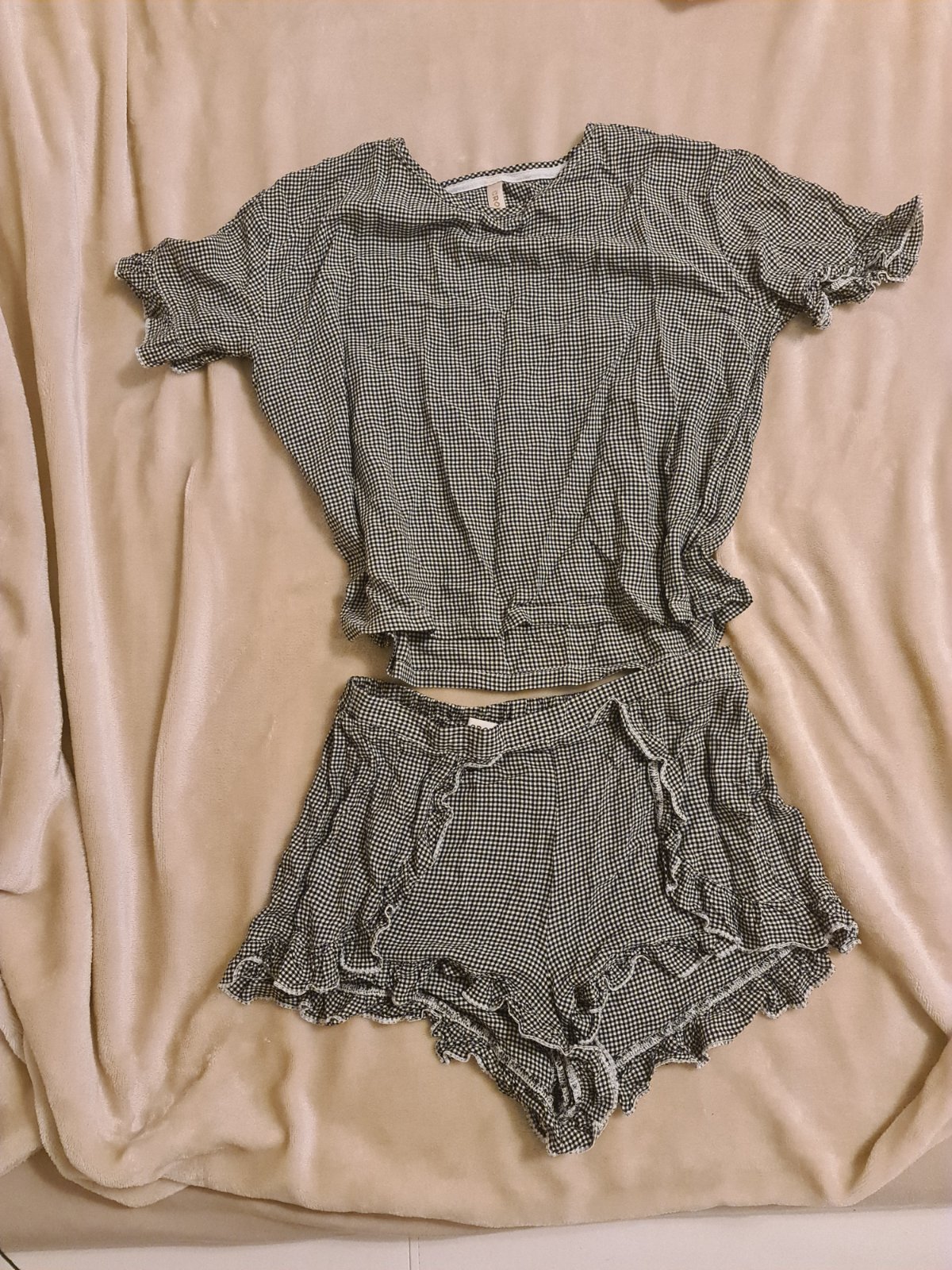 Nenosené, kratke nohavice a crop tricko/blúzočka