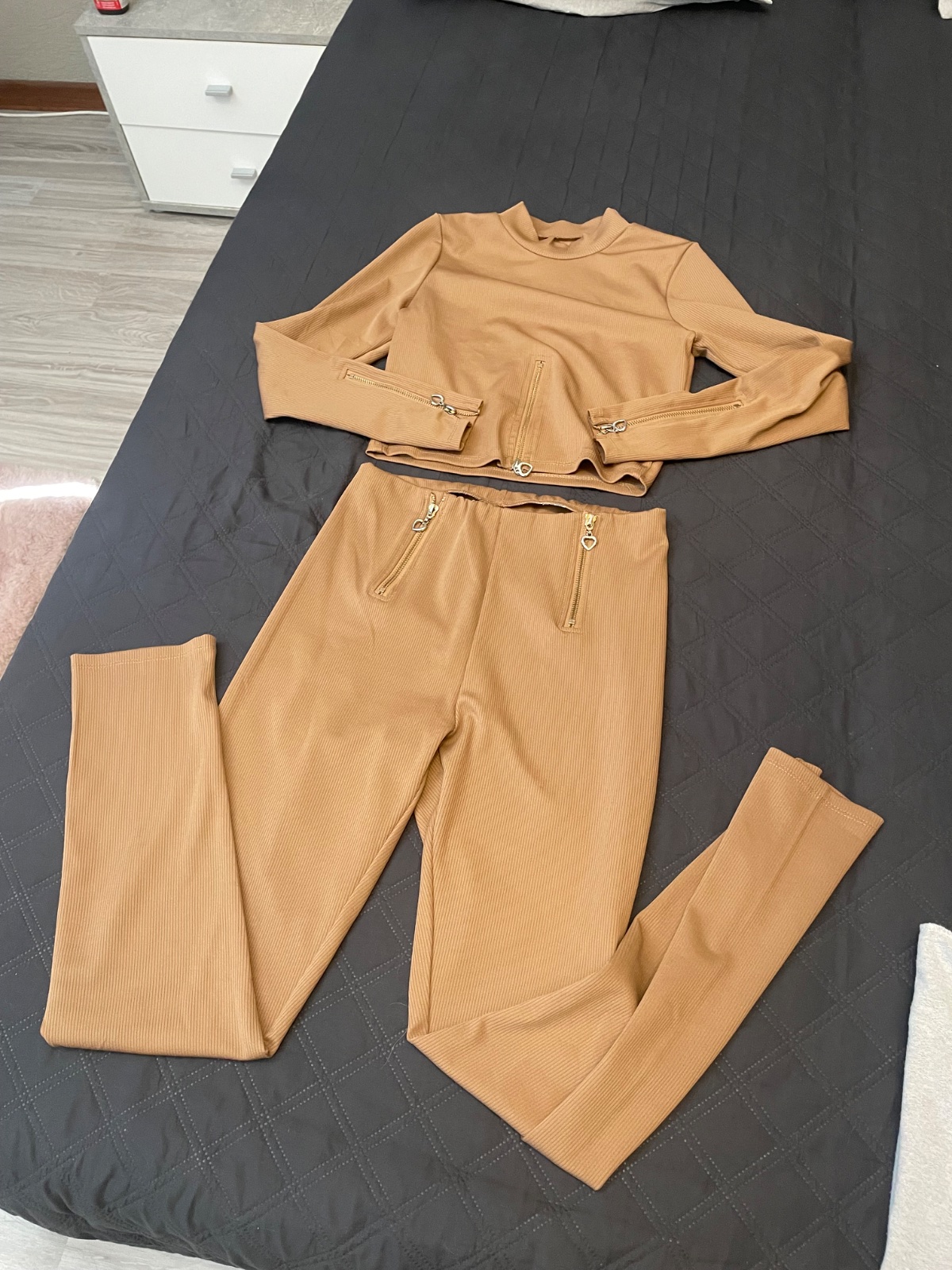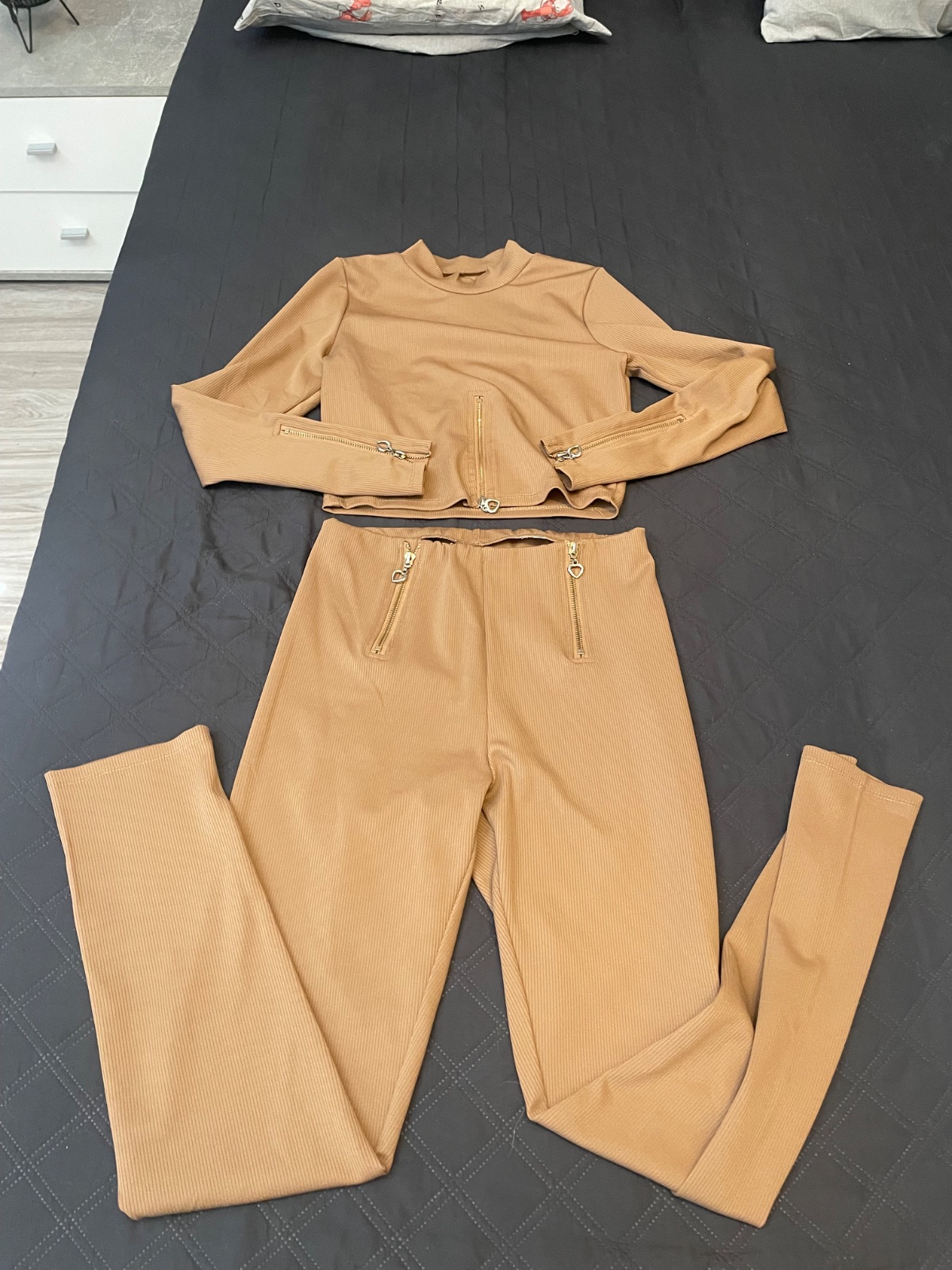 Teplučký mäkký pletený komplet na veľkosť S. Top: dĺžka37 cm a prsia 37 cm. Sukňa: dĺžka 41 cm a pás 33 cm.