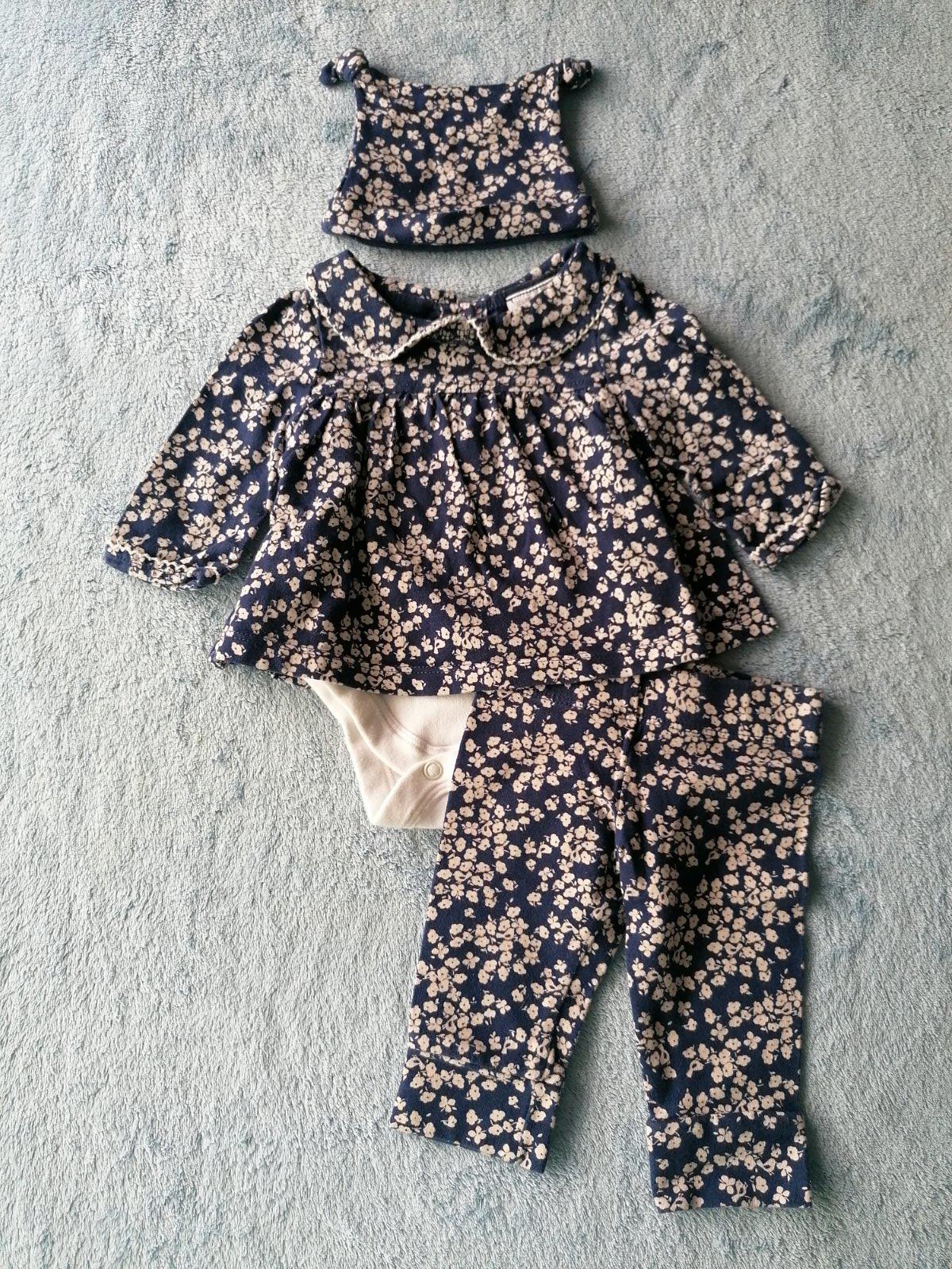 Set pre novorodenca, pyžamo, body, legíny, čiapka, rukavice. Vidieť trochu pranie, no bez poškodení.