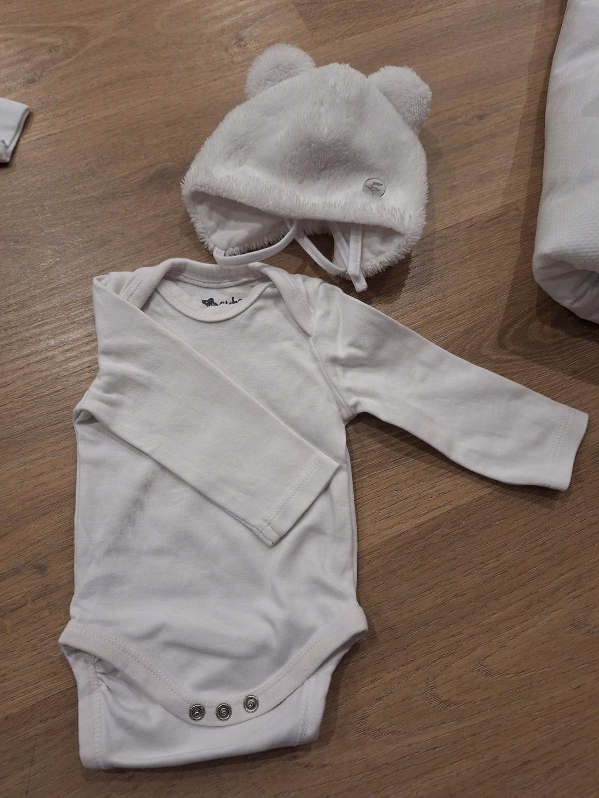 Súprava vtáčik biela. Veľkosť 62. Úžasná súpravička pozostáva so zamatových dupačiek, ktoré vyzerajú ako nohavice na traky a bavlneného trička s dlhým rukávom
