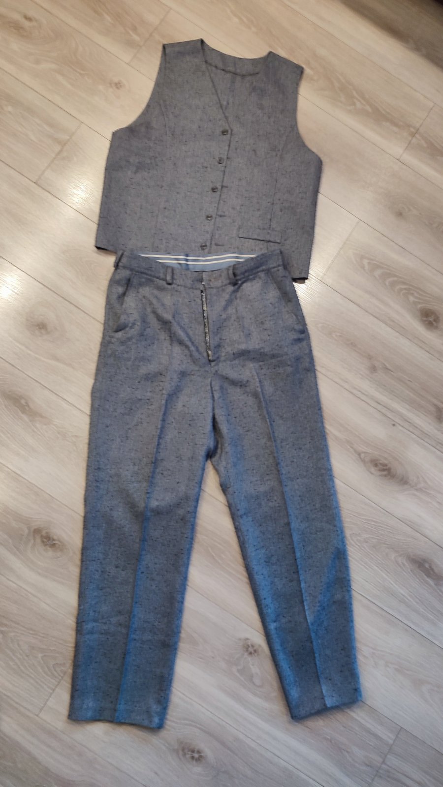 Ponúkam pánsky komplet šitý na mieru v peknej melirovej šedej farbe...