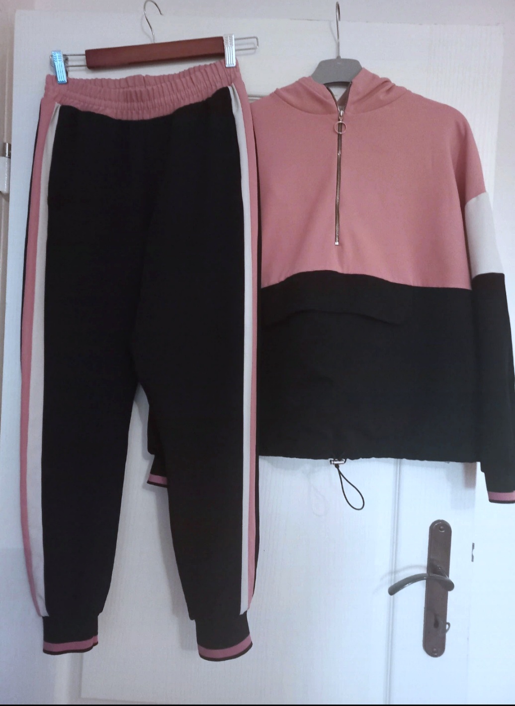 Štýlová súprava v dobrom stave, predné vrecko na mikine, spodok mikiny sa dá stiahnuť