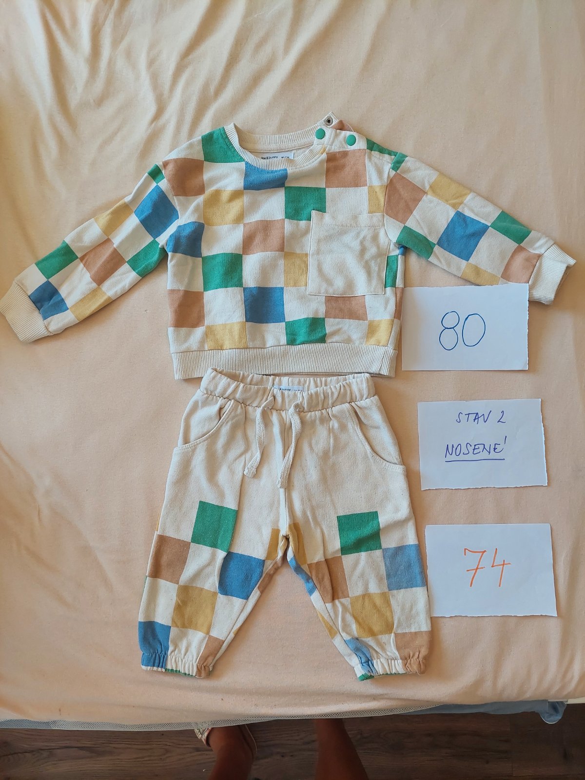 Nohavice vel.74, mikina vel.80. Príjemné a na dieťati strašne zlaté.